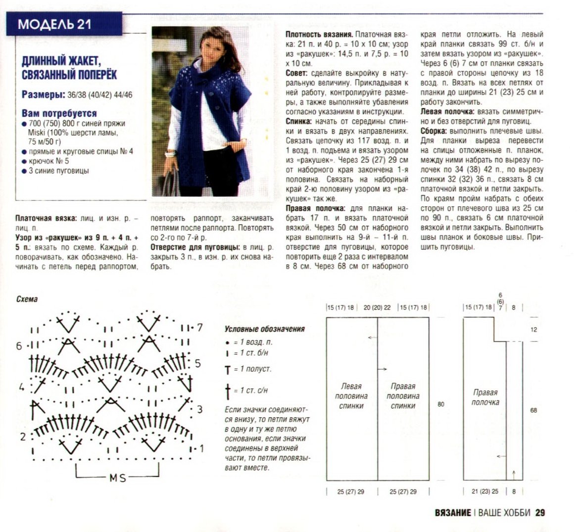 Схема вязания крючком жилет женский 44 размер