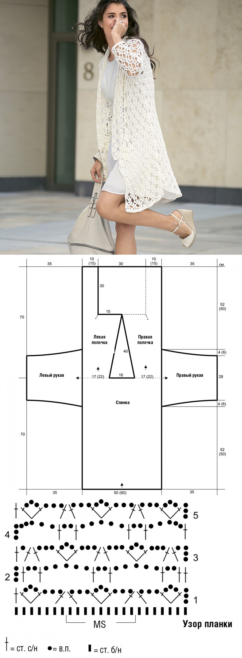 Простой узор крючком для кардигана со схемами и описанием