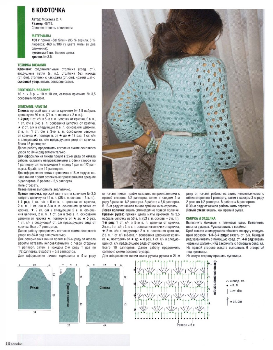 Вязаный летний кардиган женский спицами схема