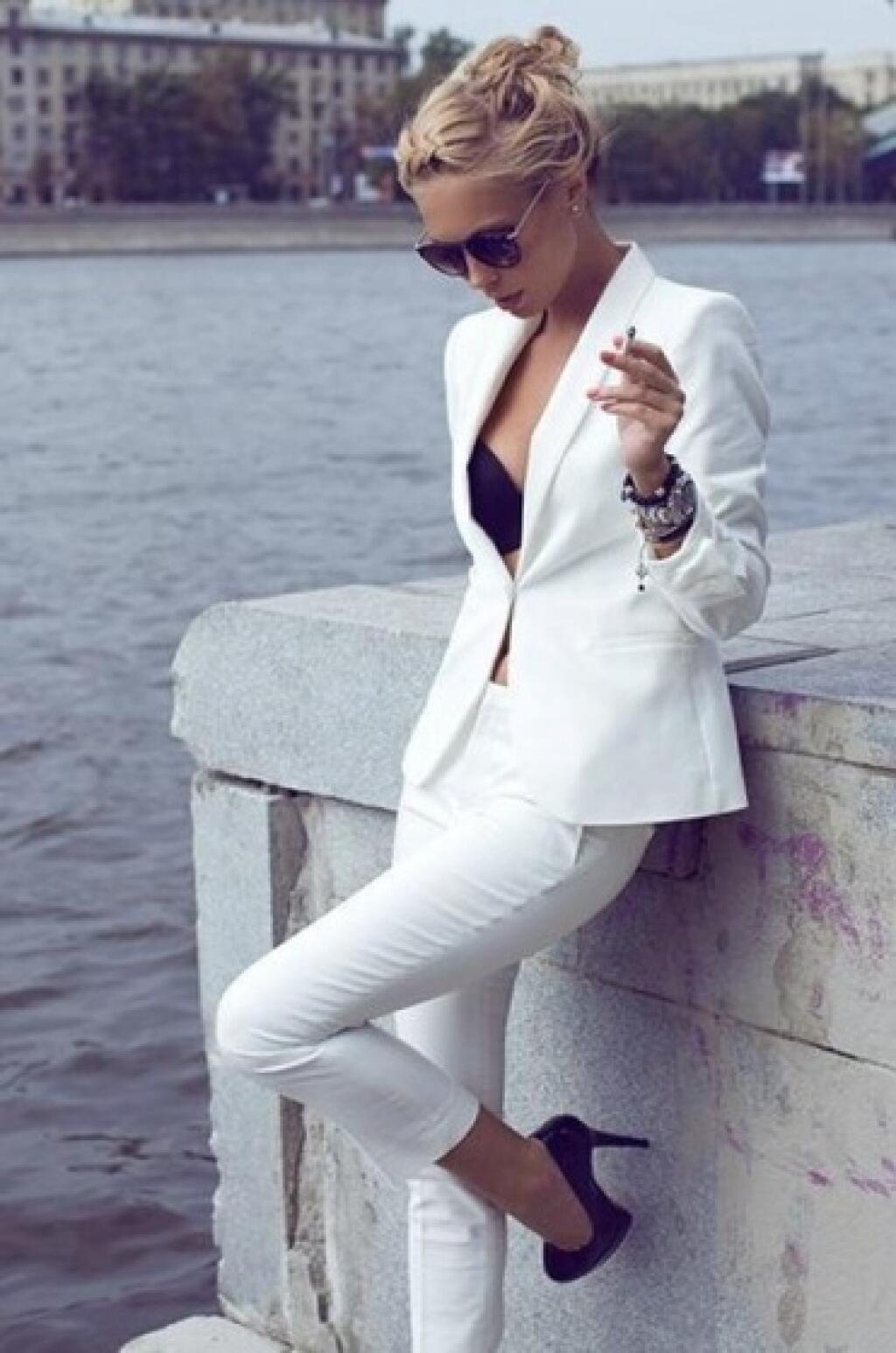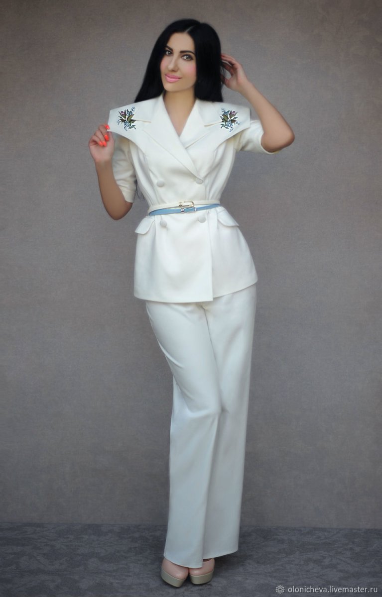 Белый брючный костюм женский