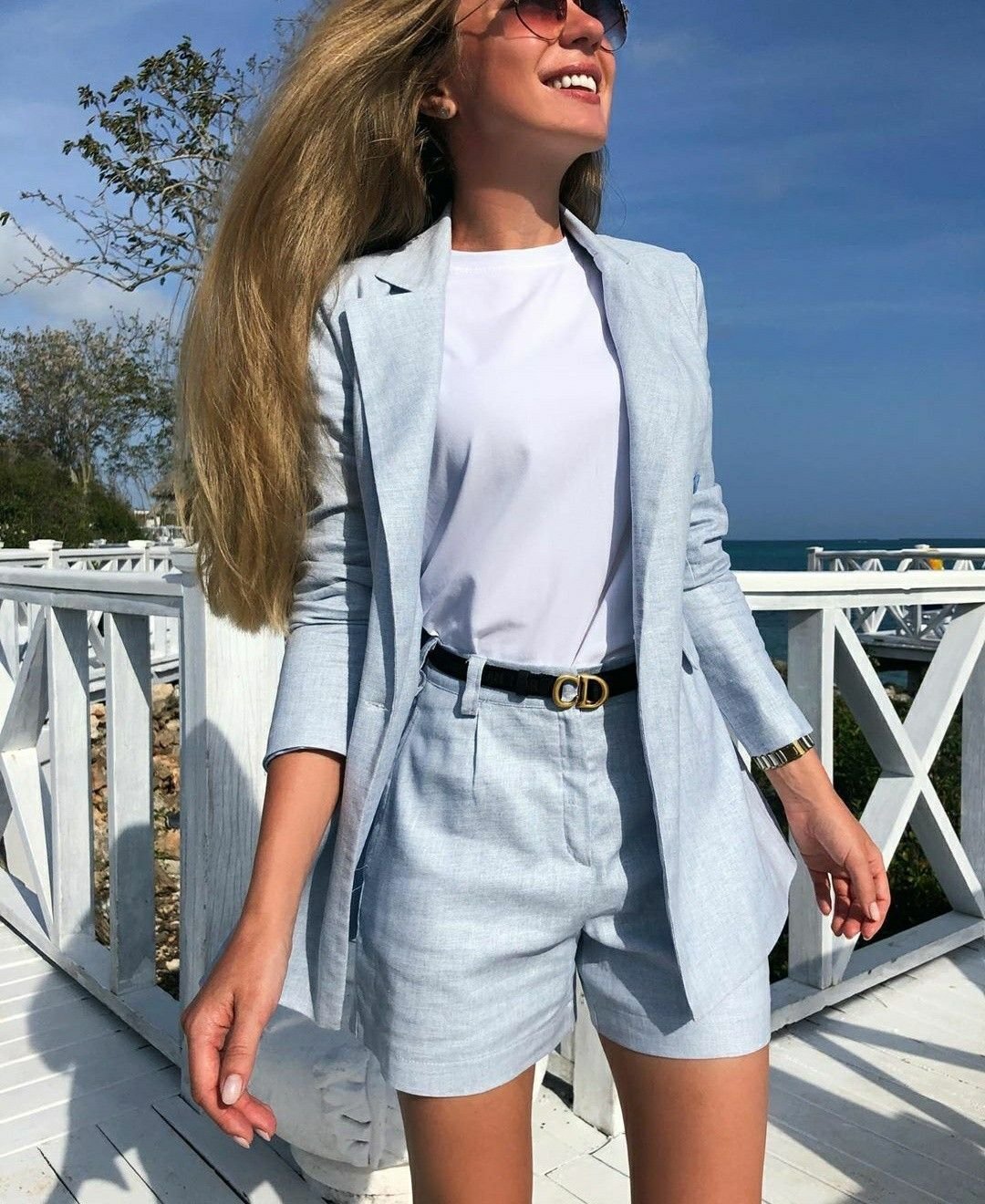 Льняной костюм с шортами женский