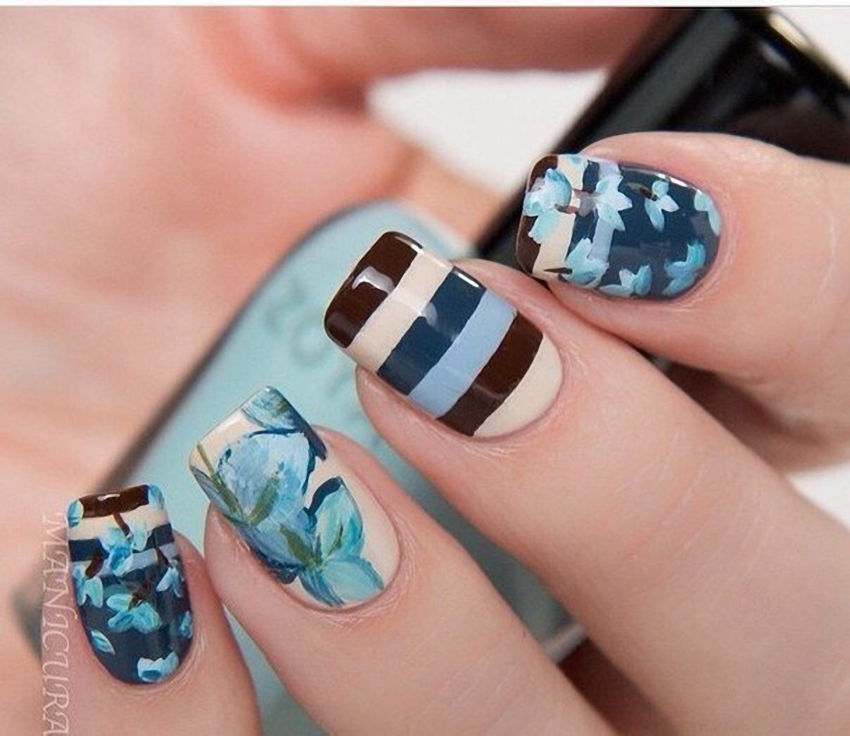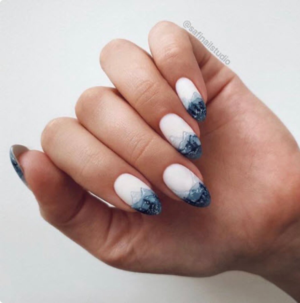 Голубой маникюр с разводами