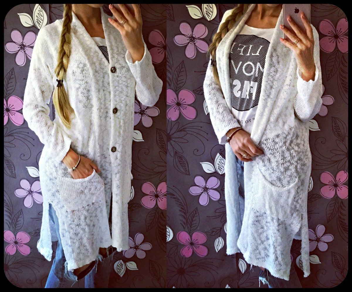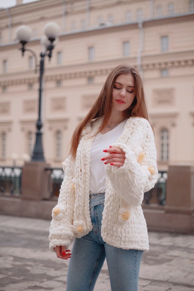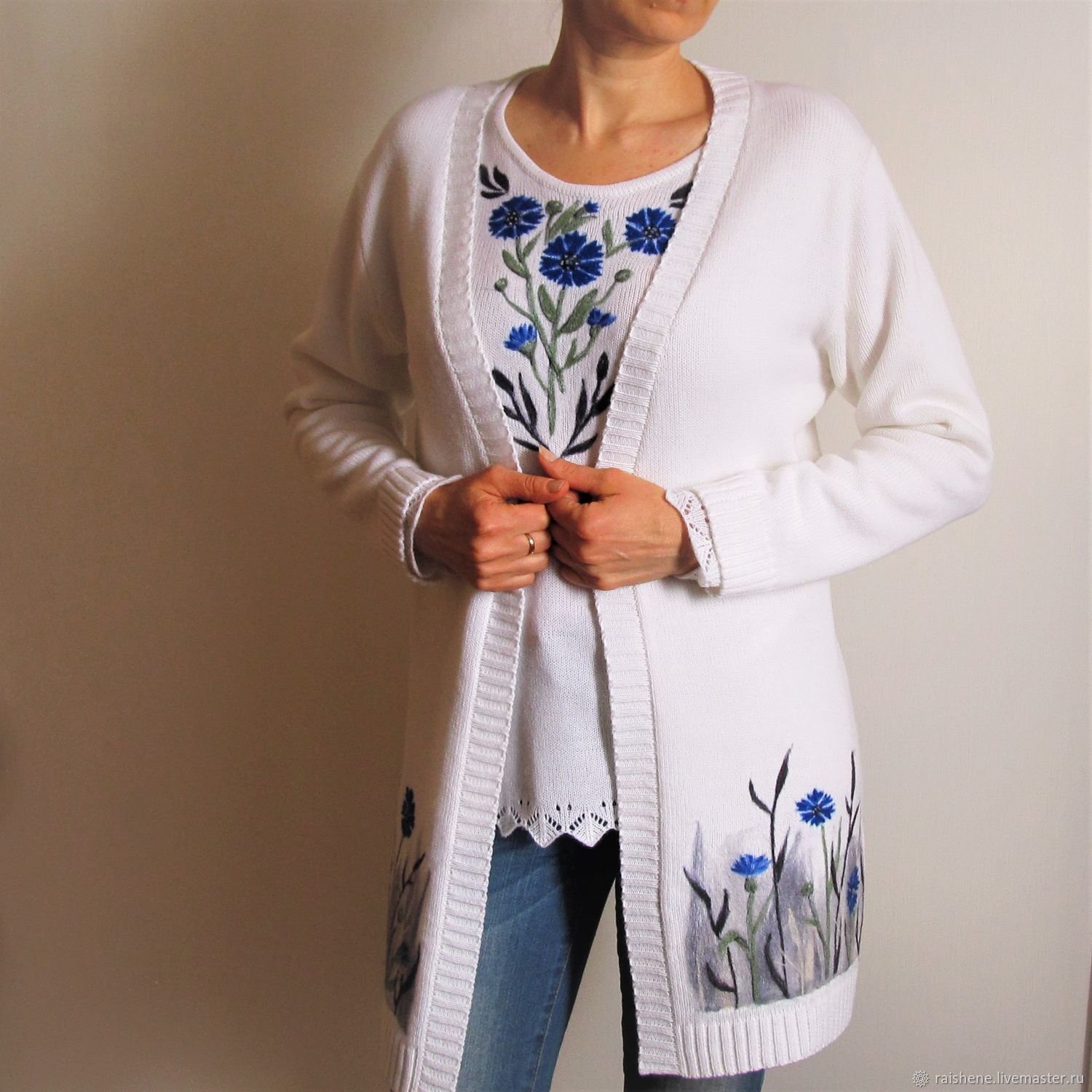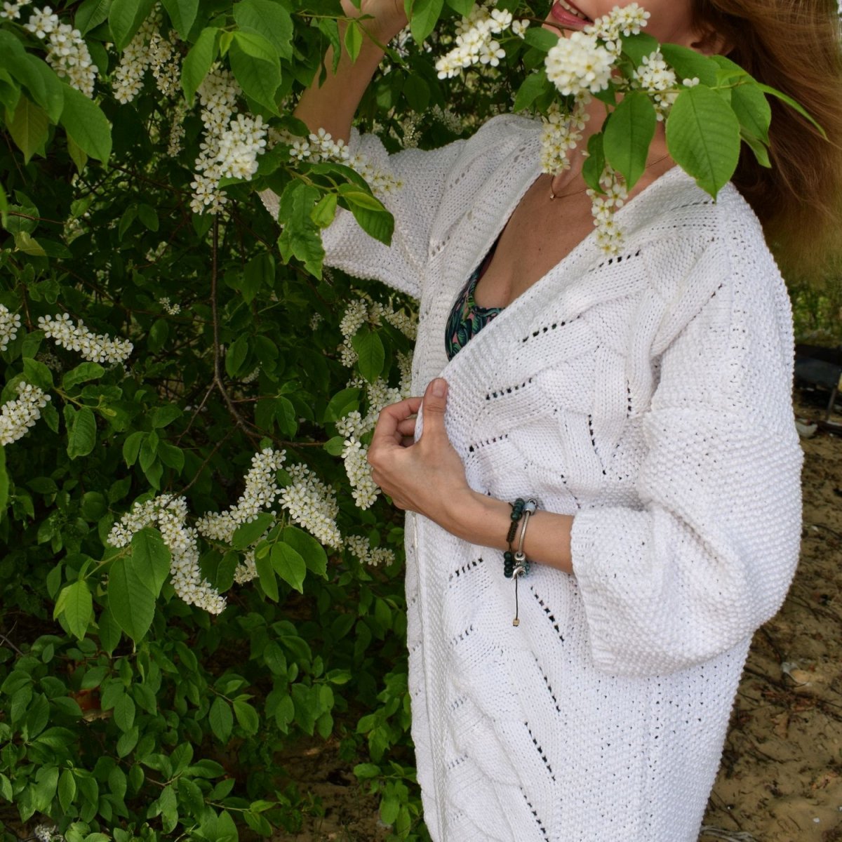 Вязаное изделие с длинным рукавом белое из хлопка фото