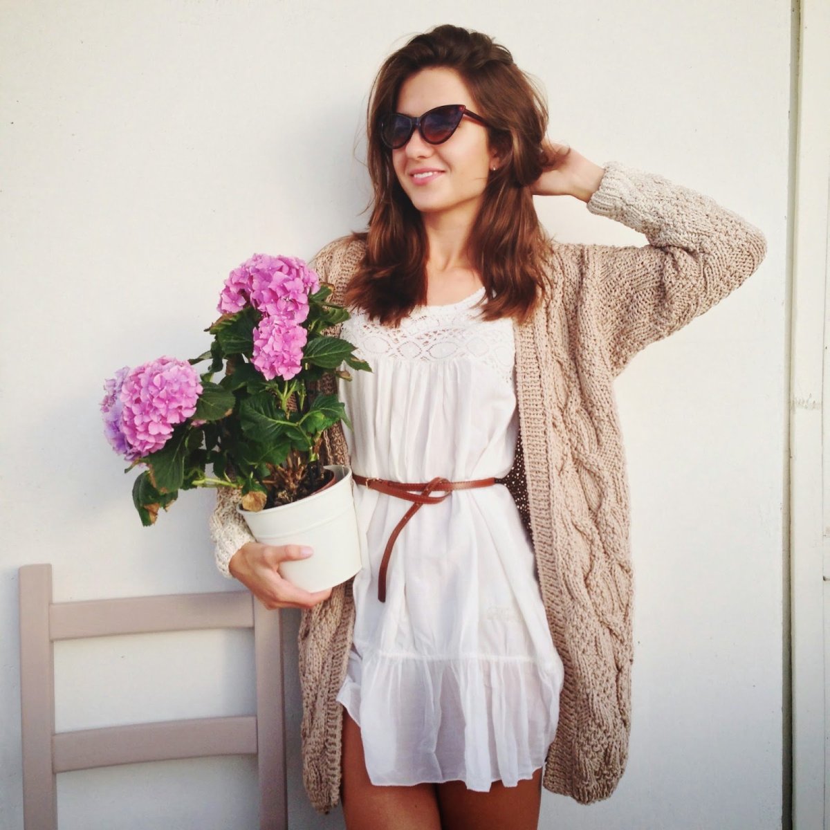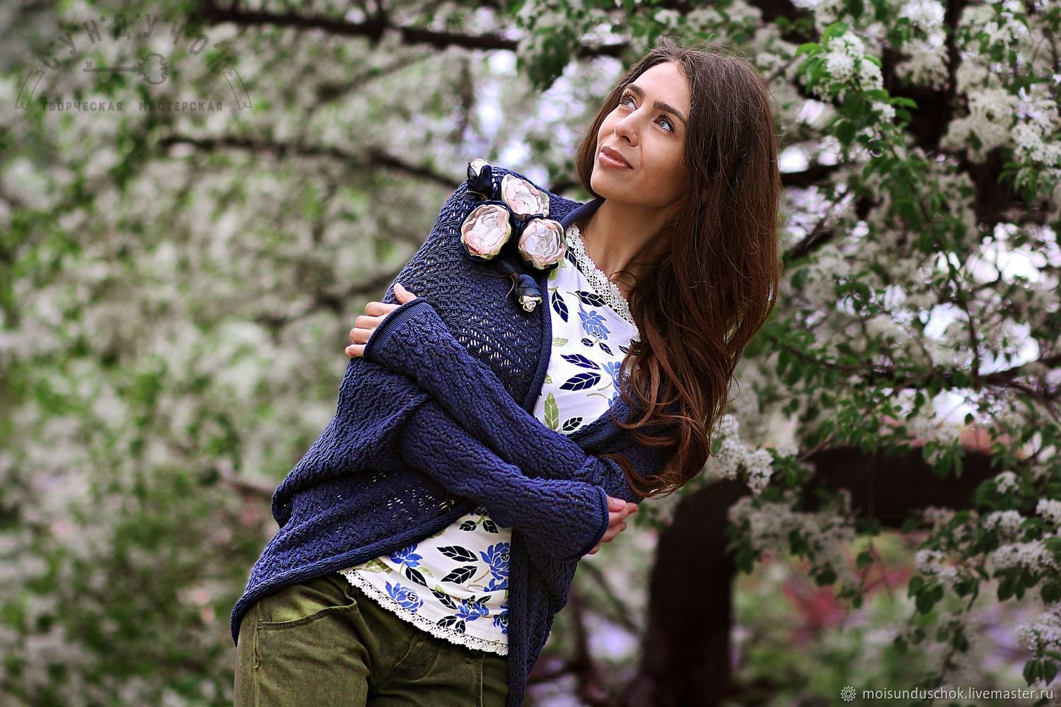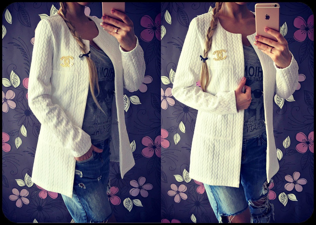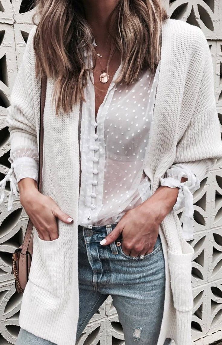 Вязаное изделие с длинным рукавом белое из хлопка фото