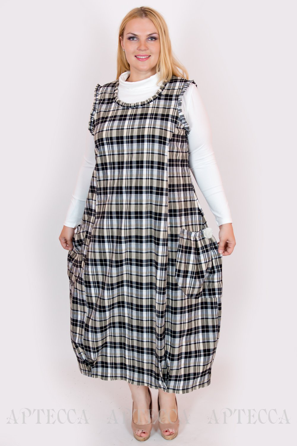 Сарафан в клетку для полных