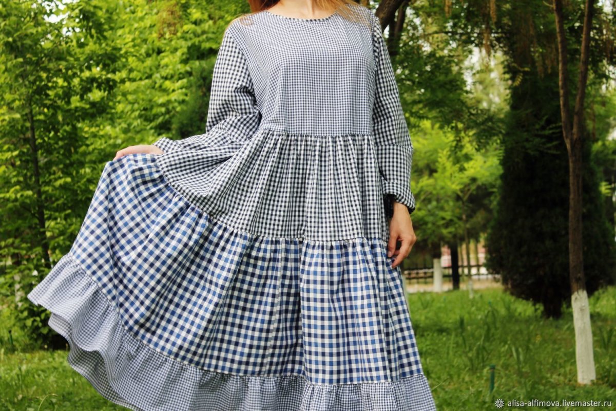 Платье в клетку в стиле бохо