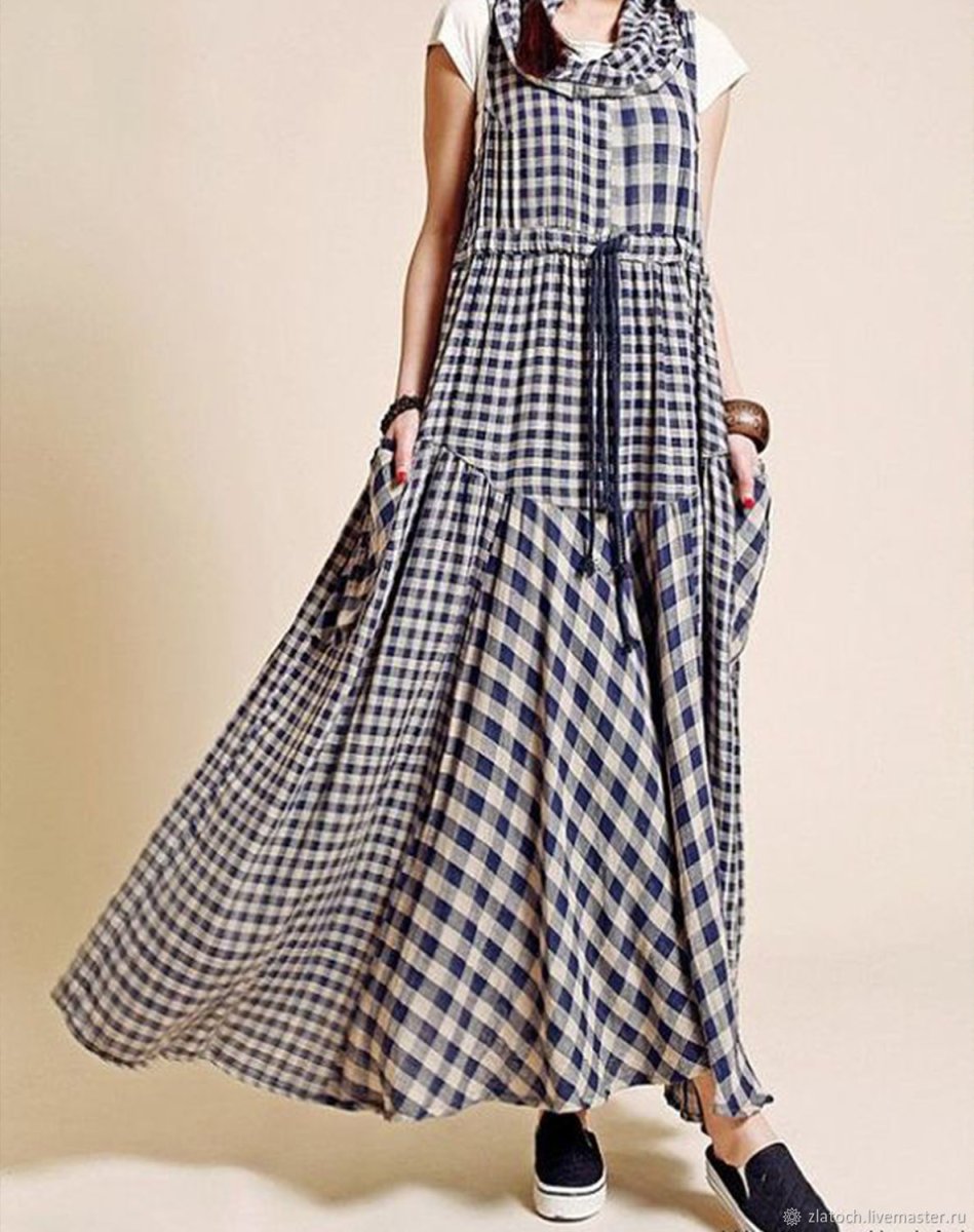 Сарафан в клетку бохо