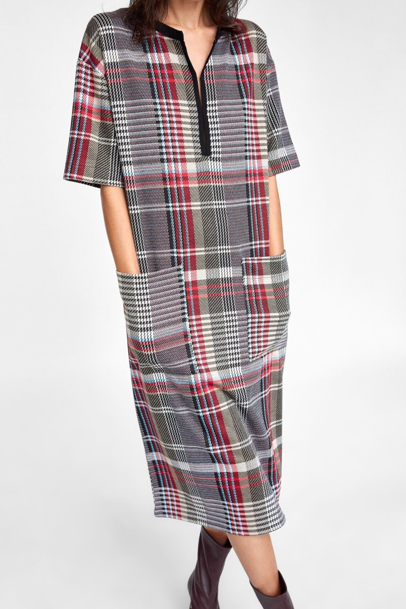 Платье Зара клетчатое длинное