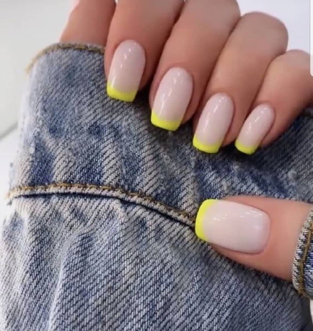 Жёлтый френч на ногтях