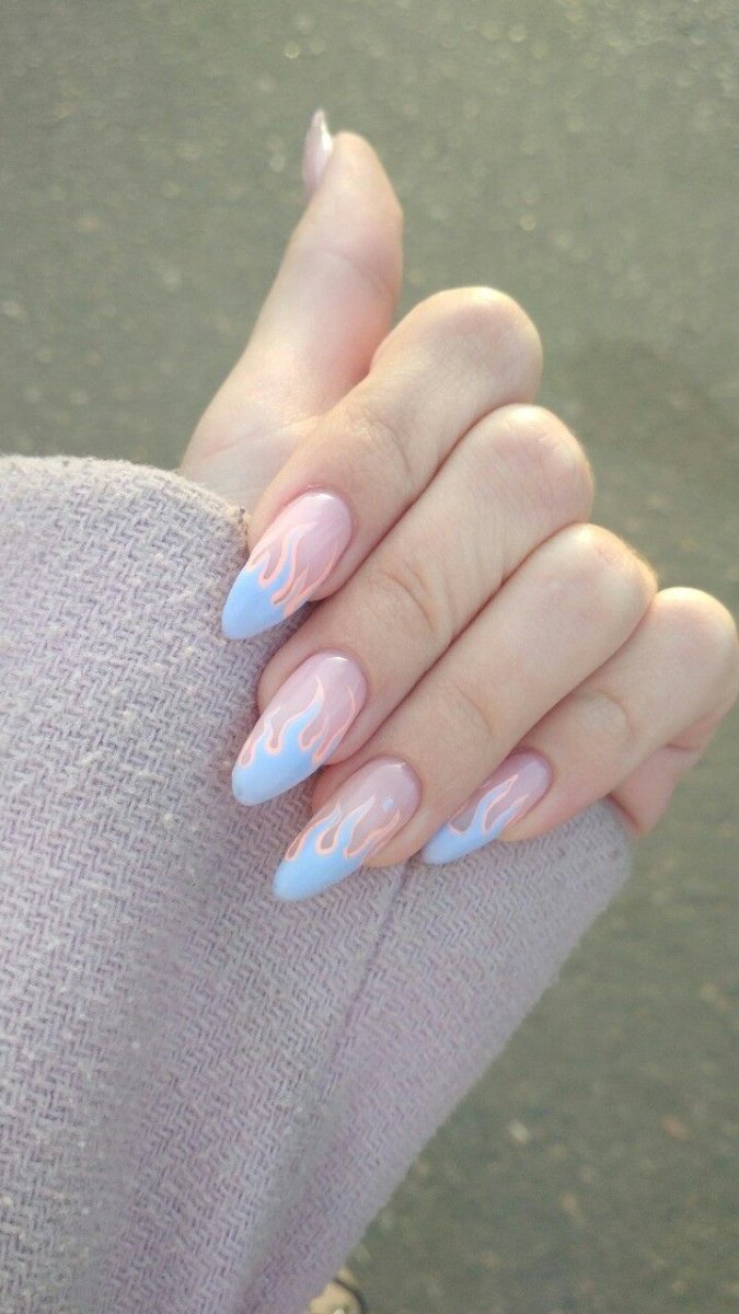 Маникюр с облачками на длинные ногти