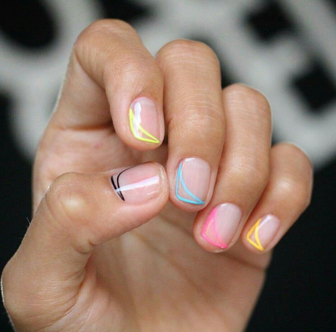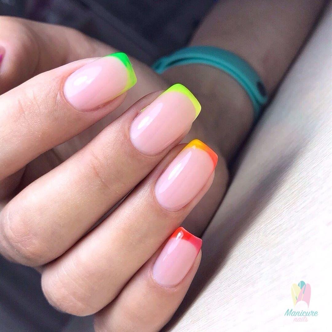 Маникюр неоновый френч разноцветный
