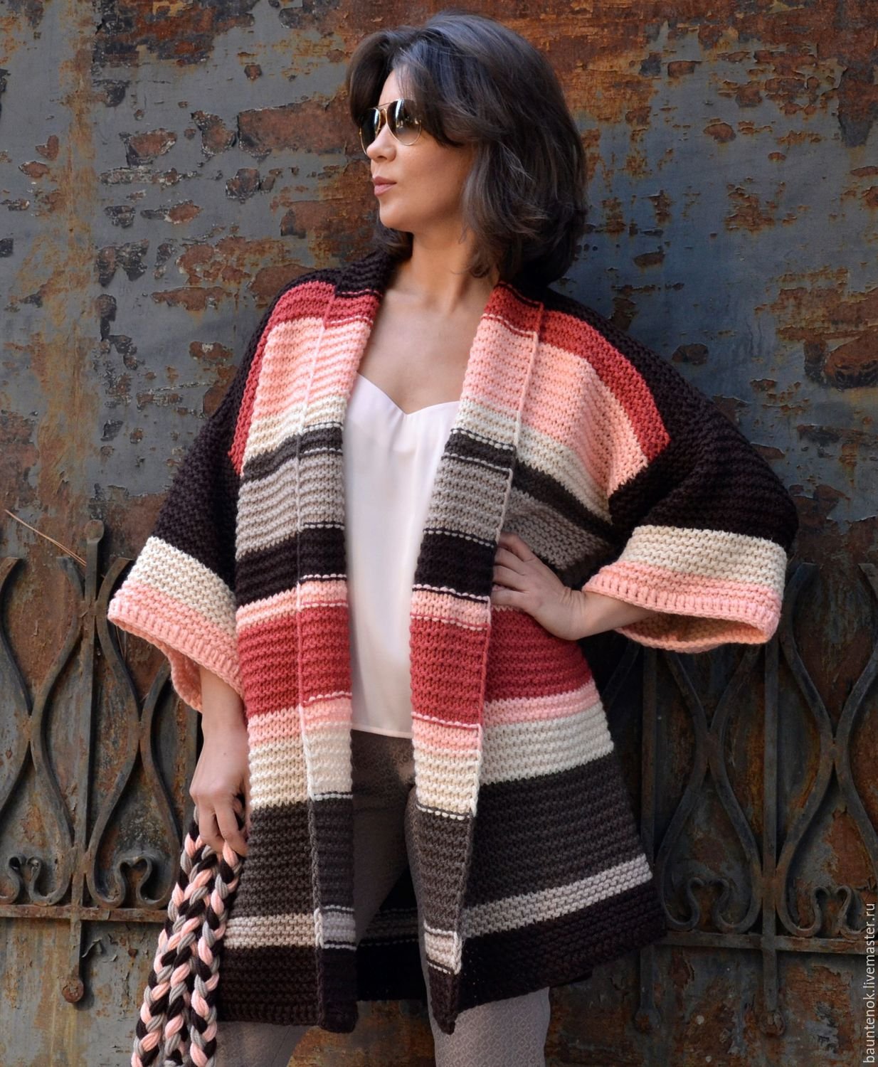 Полосатый кардиган вязаный