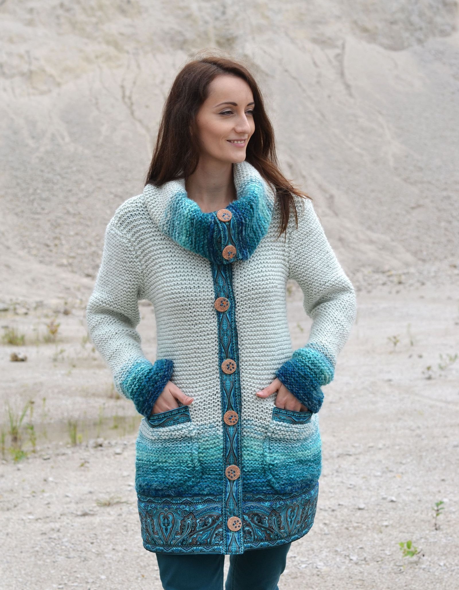 Тунисское вязание кардиган пальто