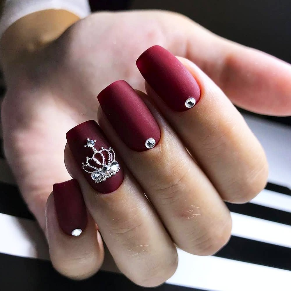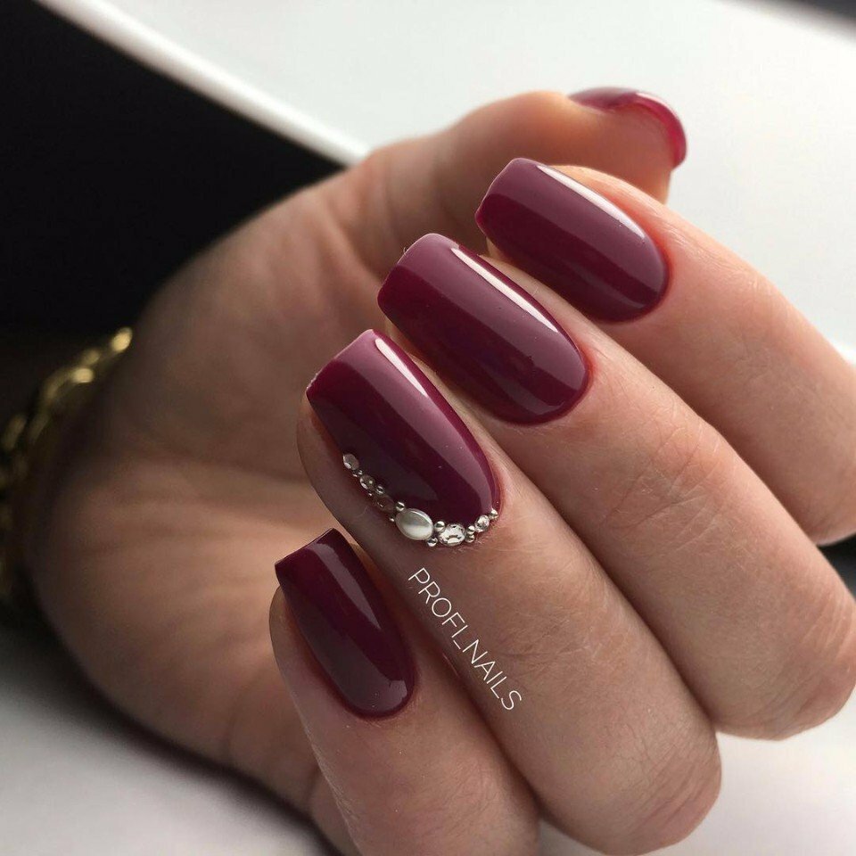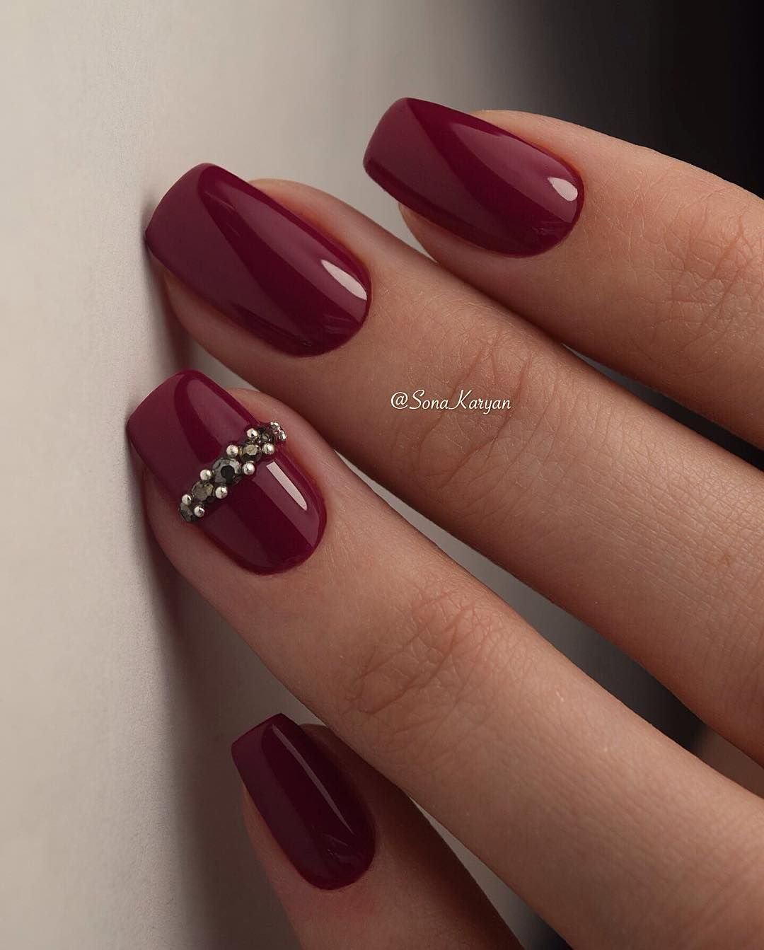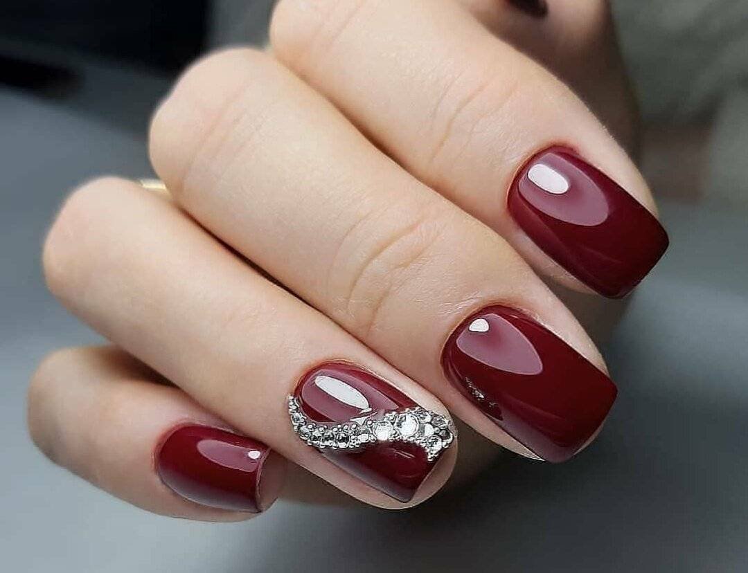 Вишнёвый бордовый маникюр на короткие ногти 2023