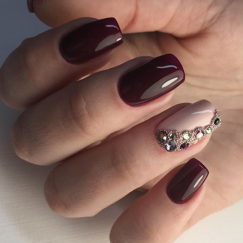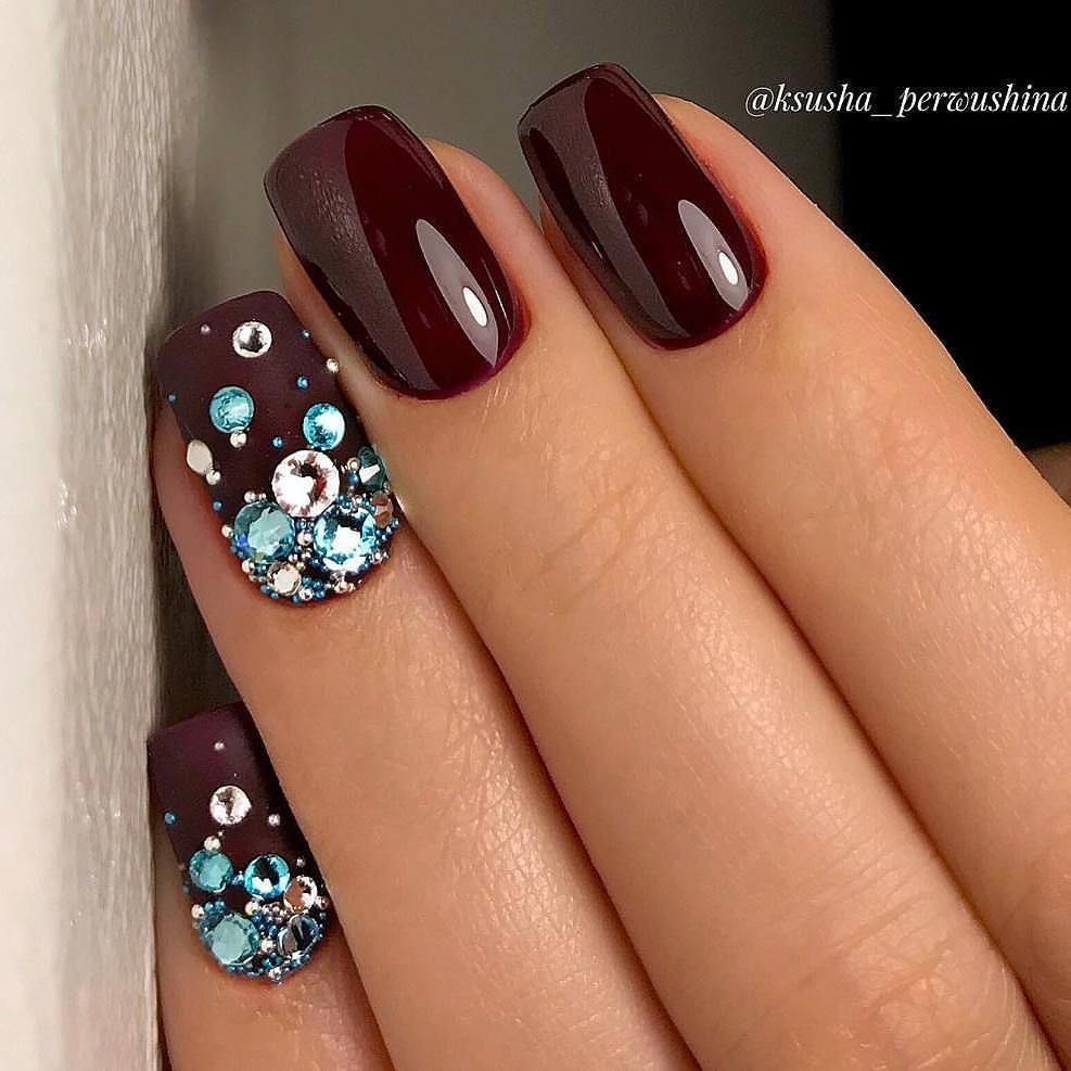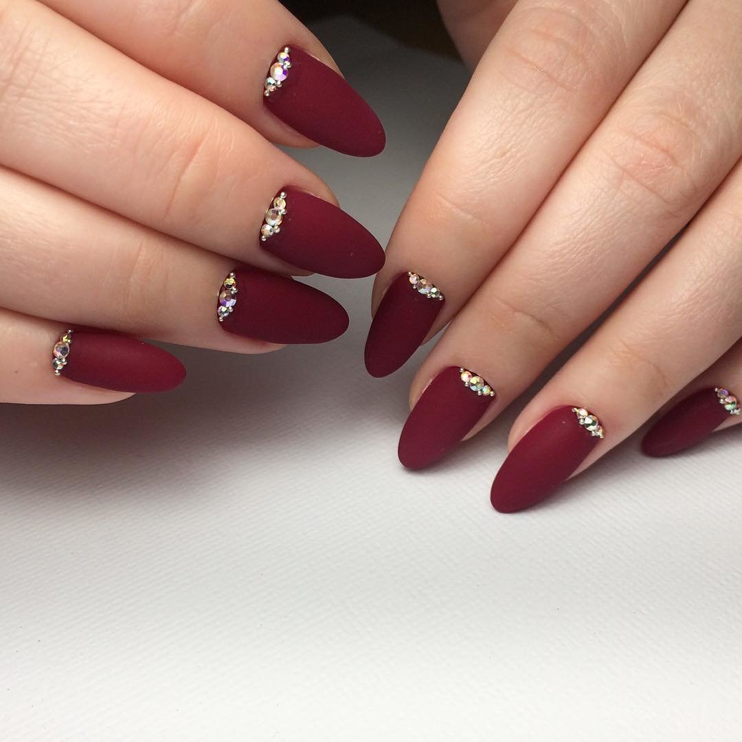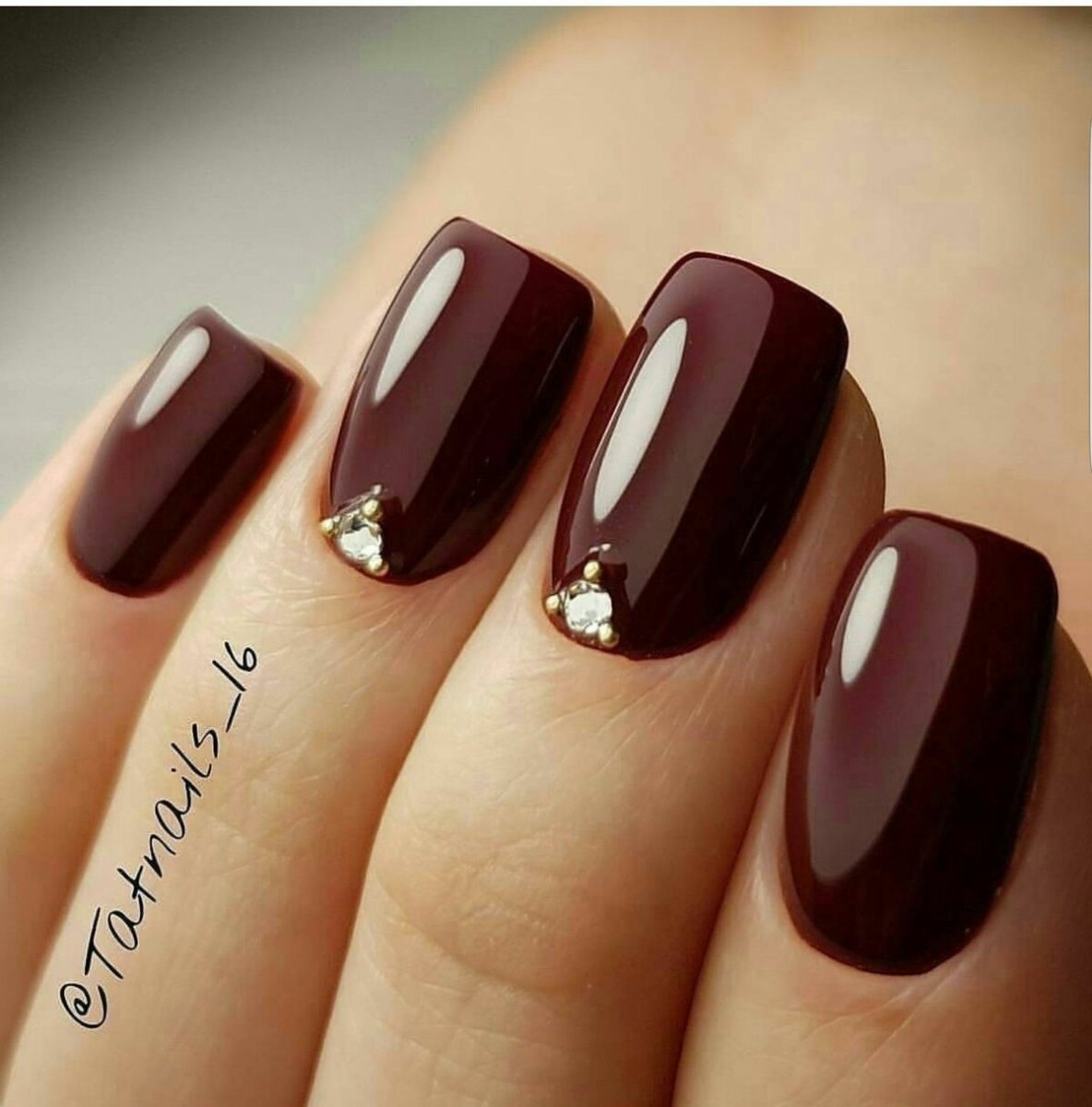 Вишнёвый бордовый маникюр на короткие ногти 2023