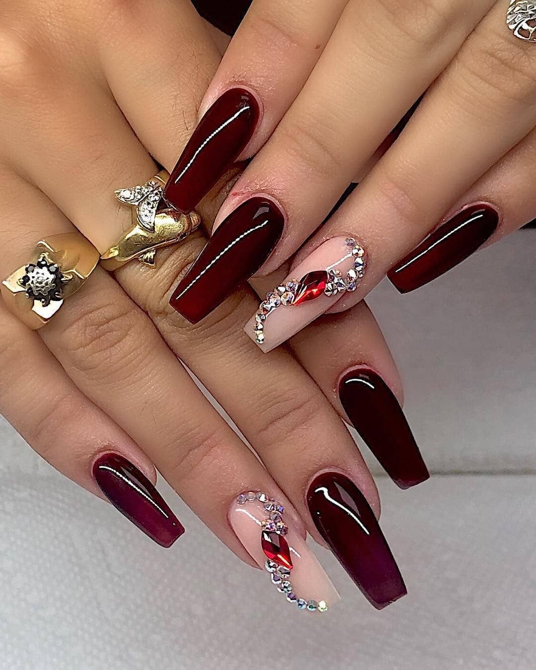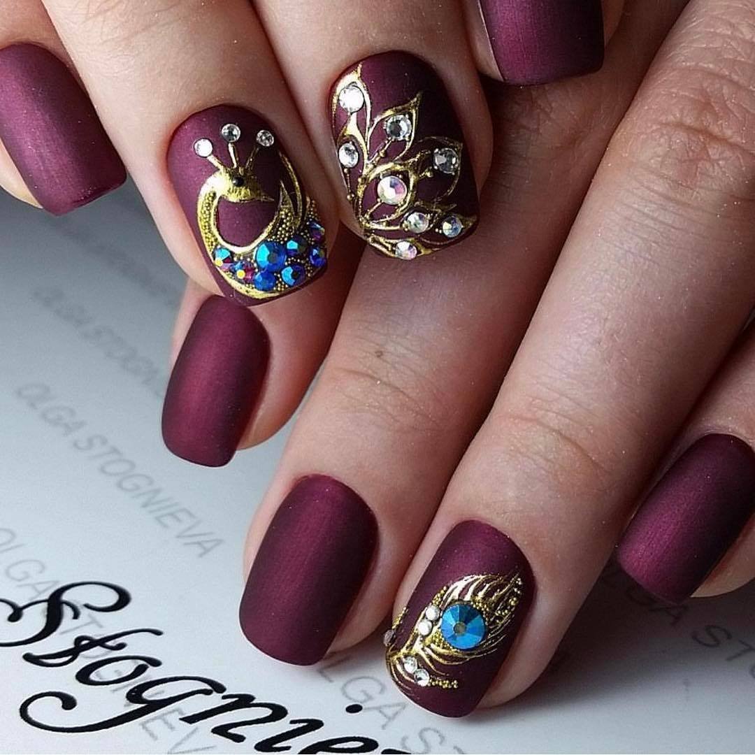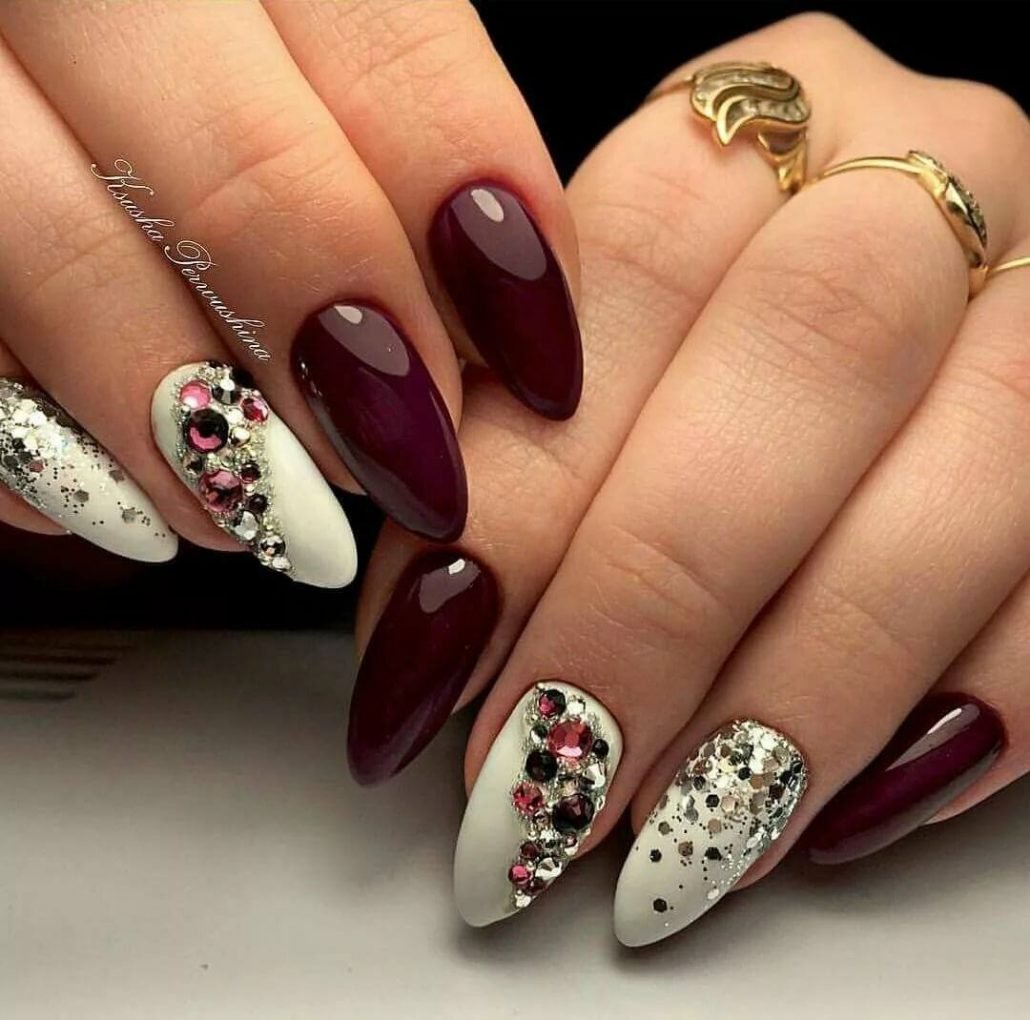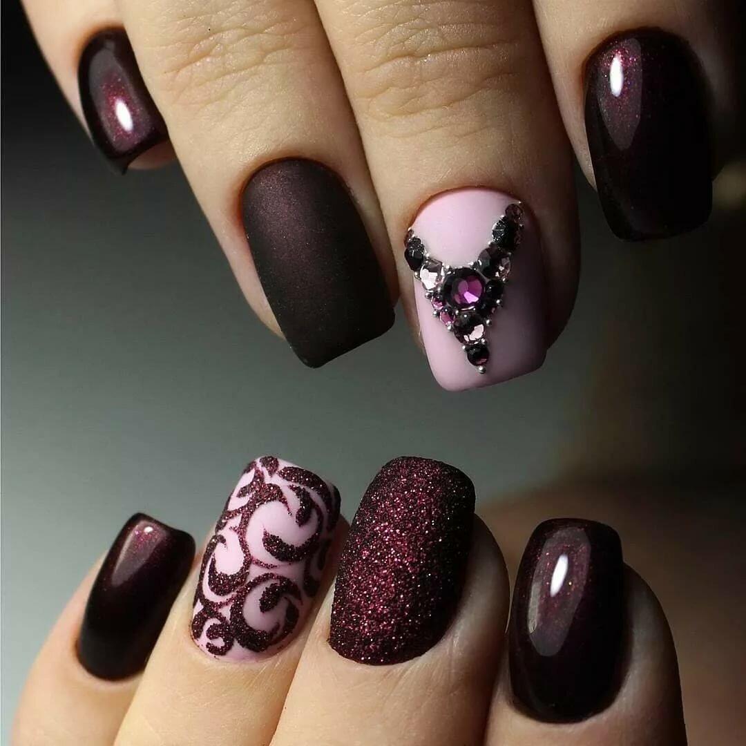 Вишнёвый бордовый маникюр на короткие ногти 2023