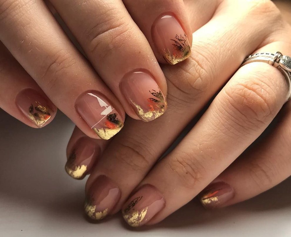 Маникюр осень 2020 золотой с втиркой