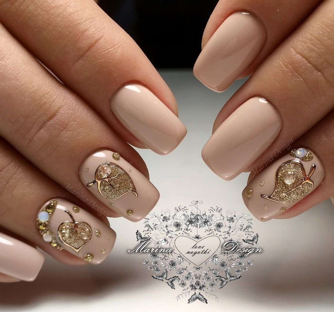 Ногти бежевые с золотом