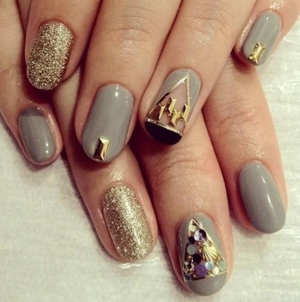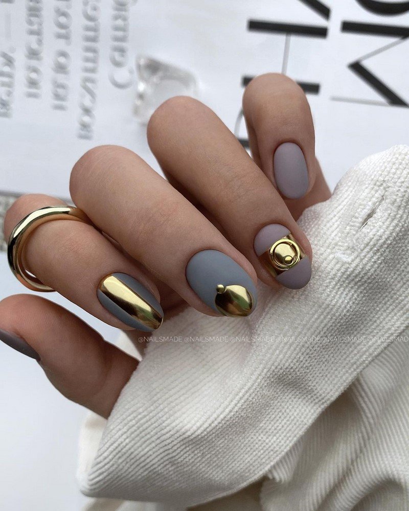 Маникюр серый с золотой фольгой