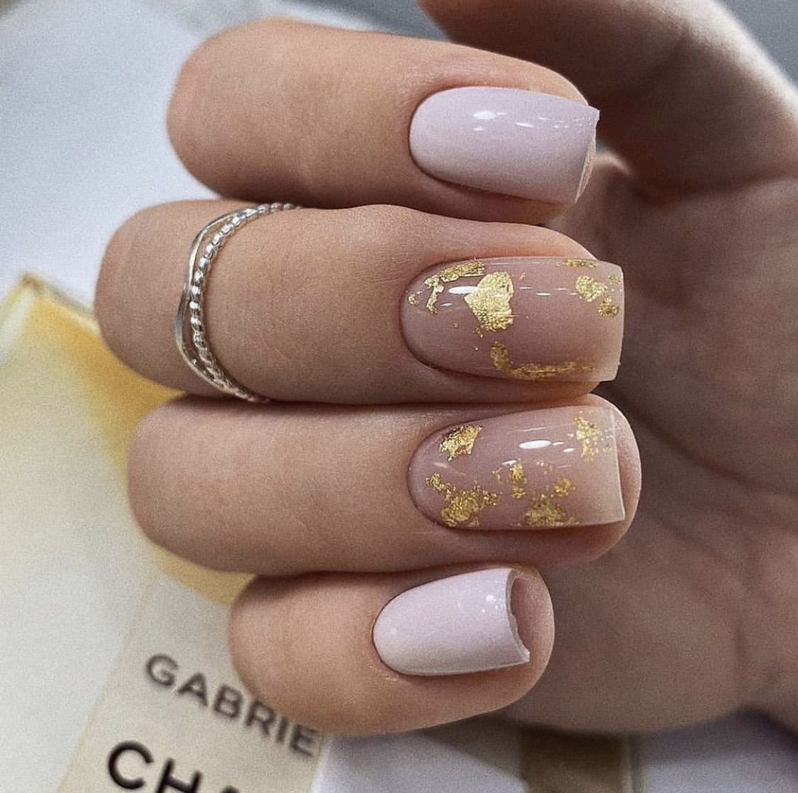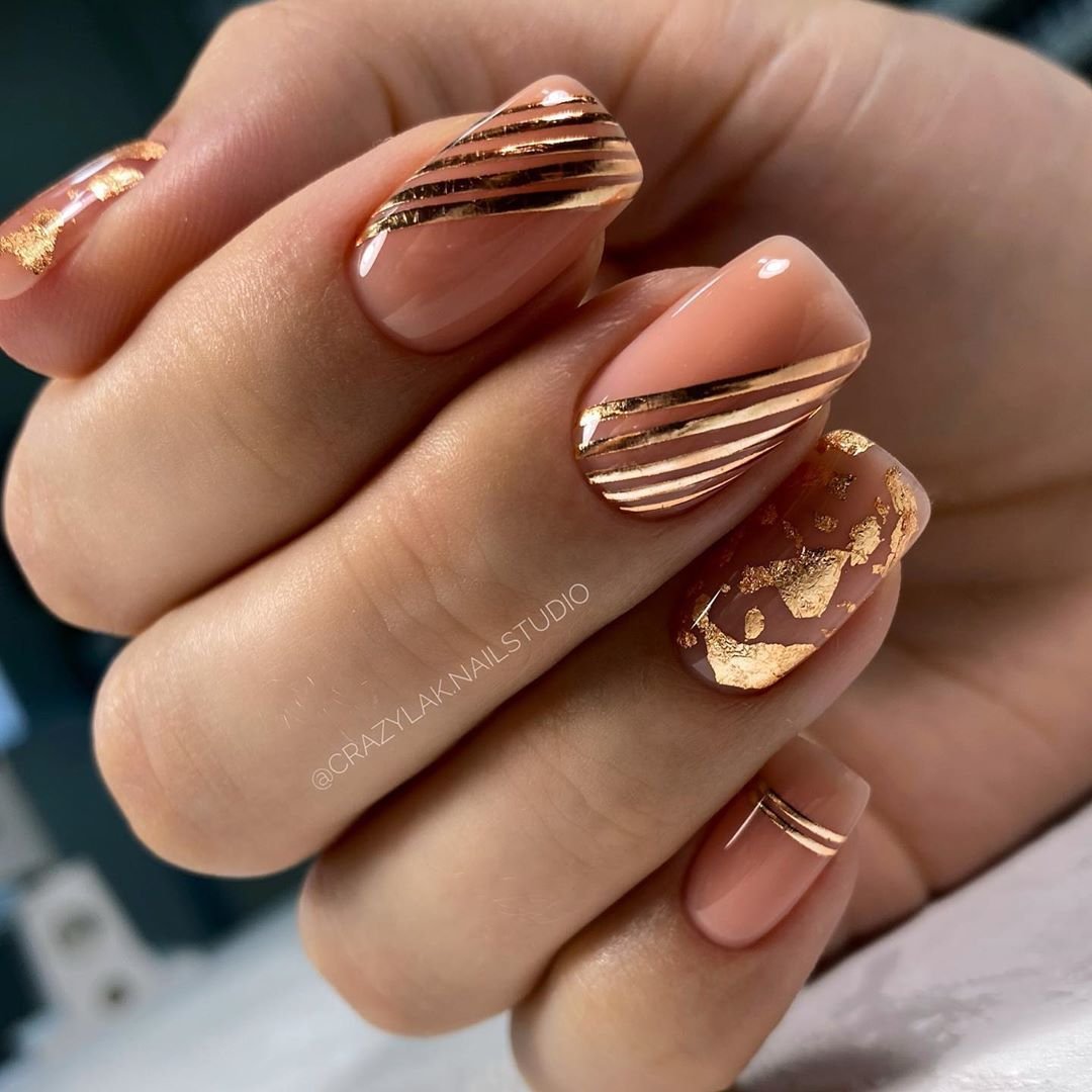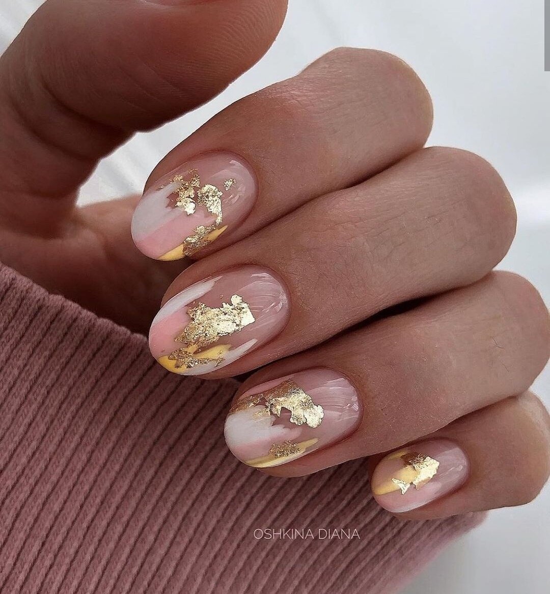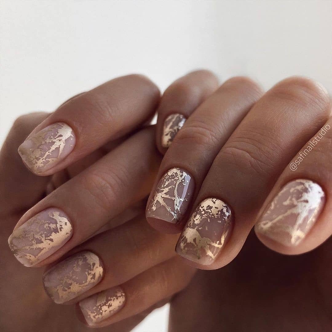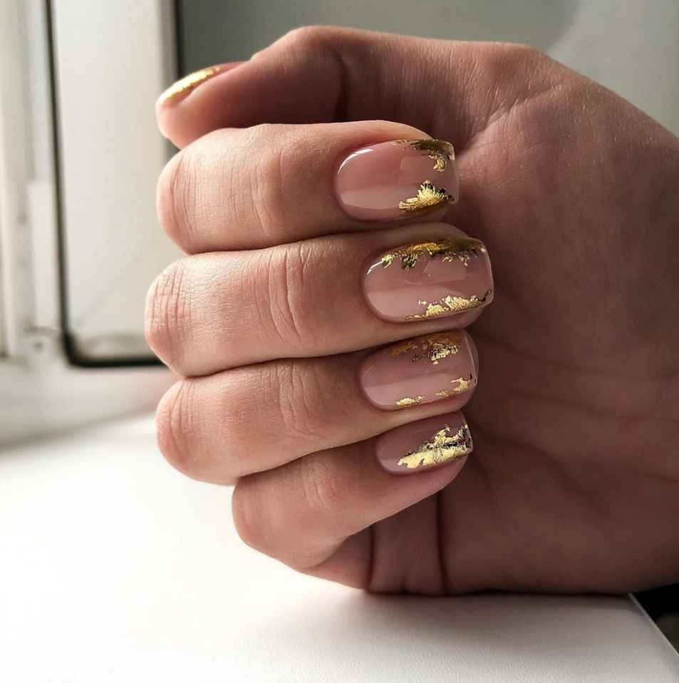 Нюдовый маникюр с золотой фольгой