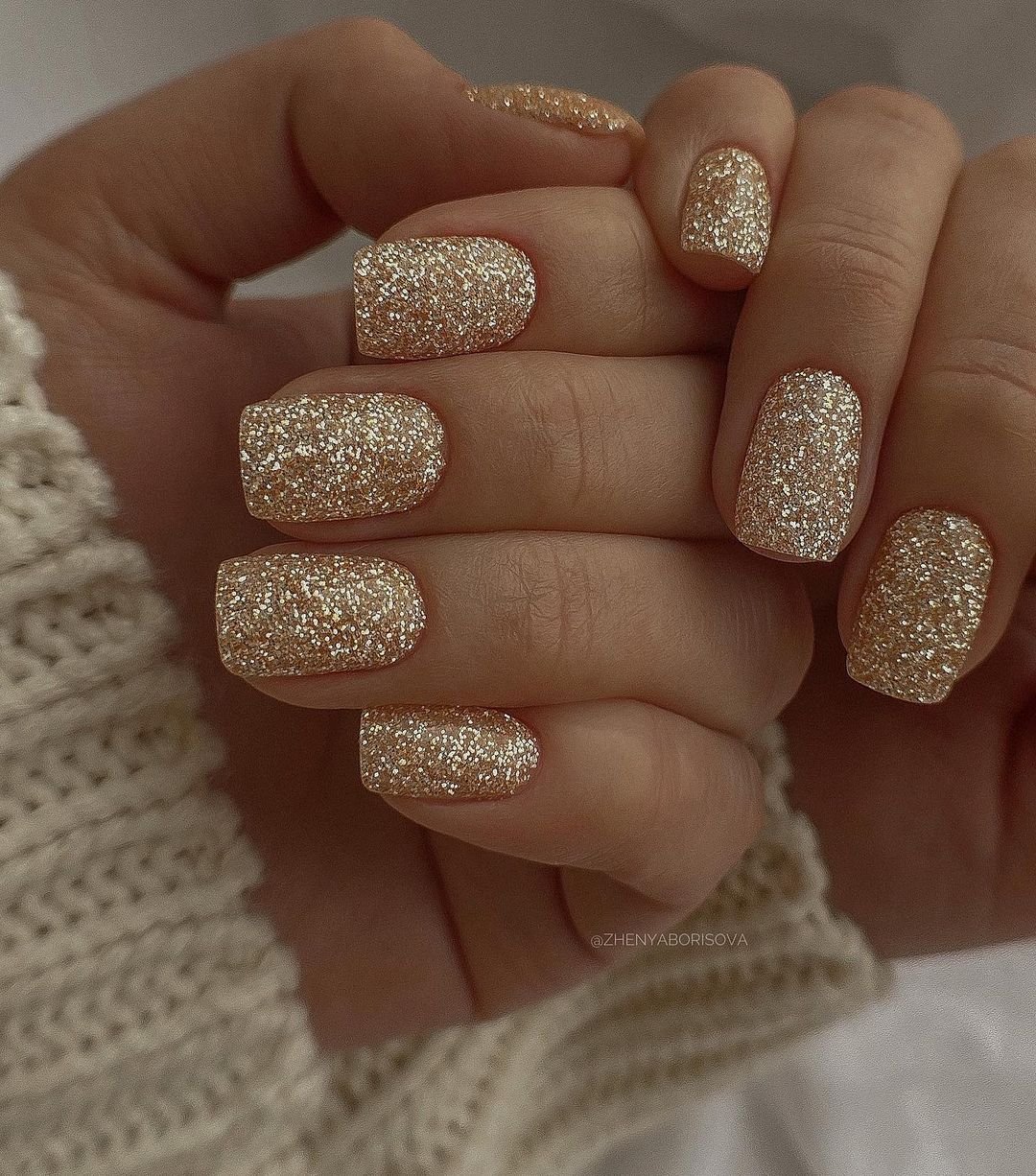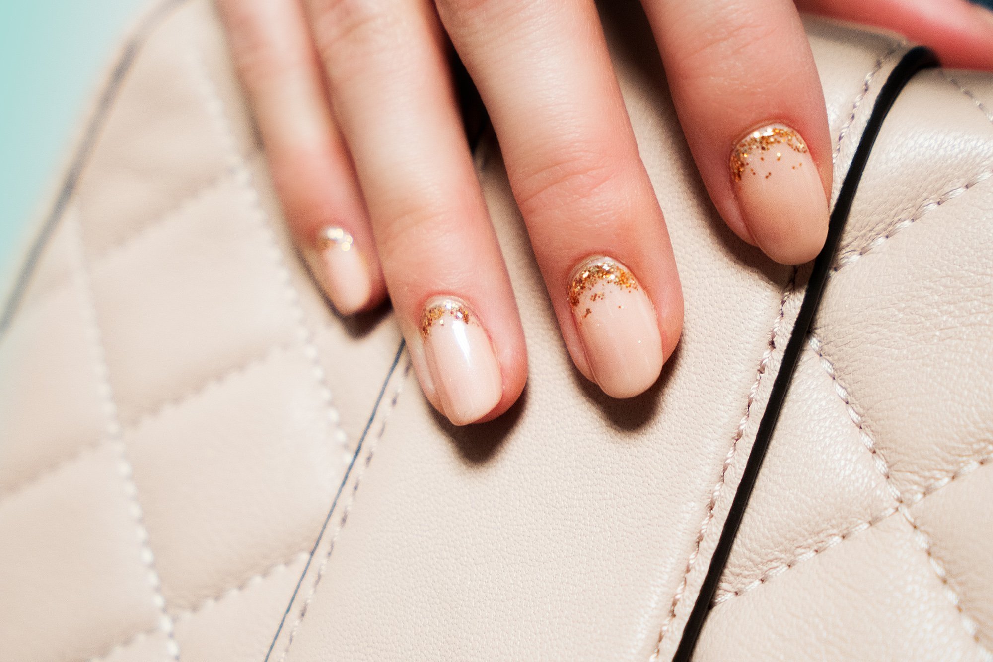 Маникюр бежевый с блестками