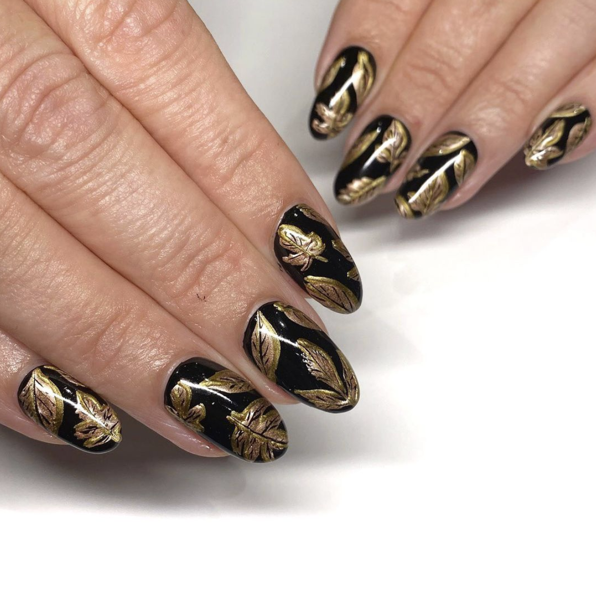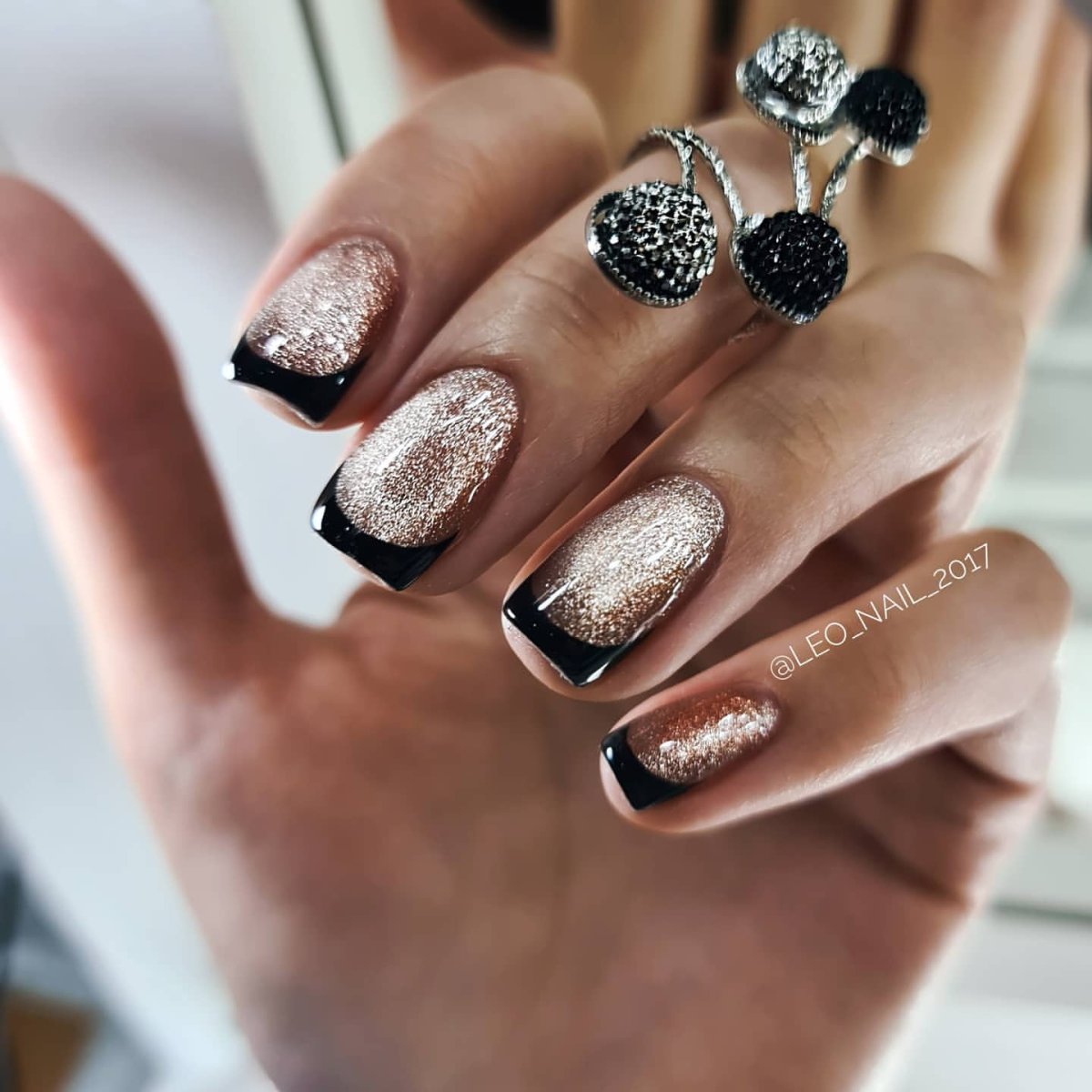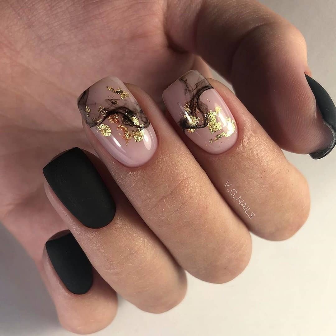 Маникюр чёрный с золотом