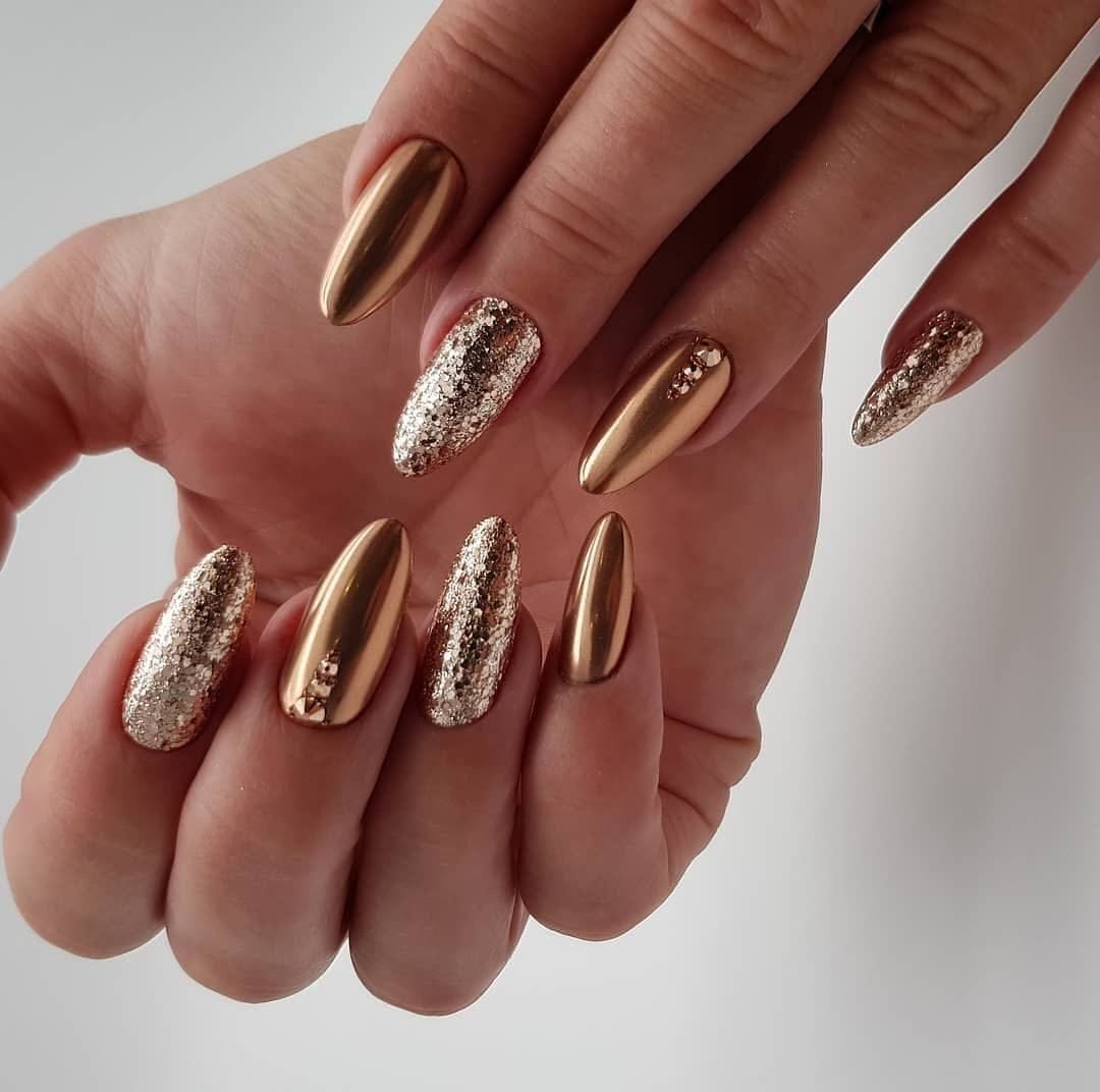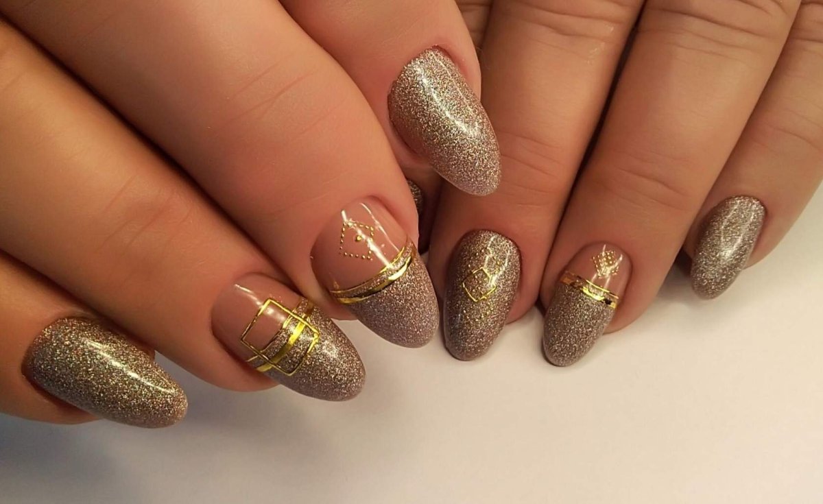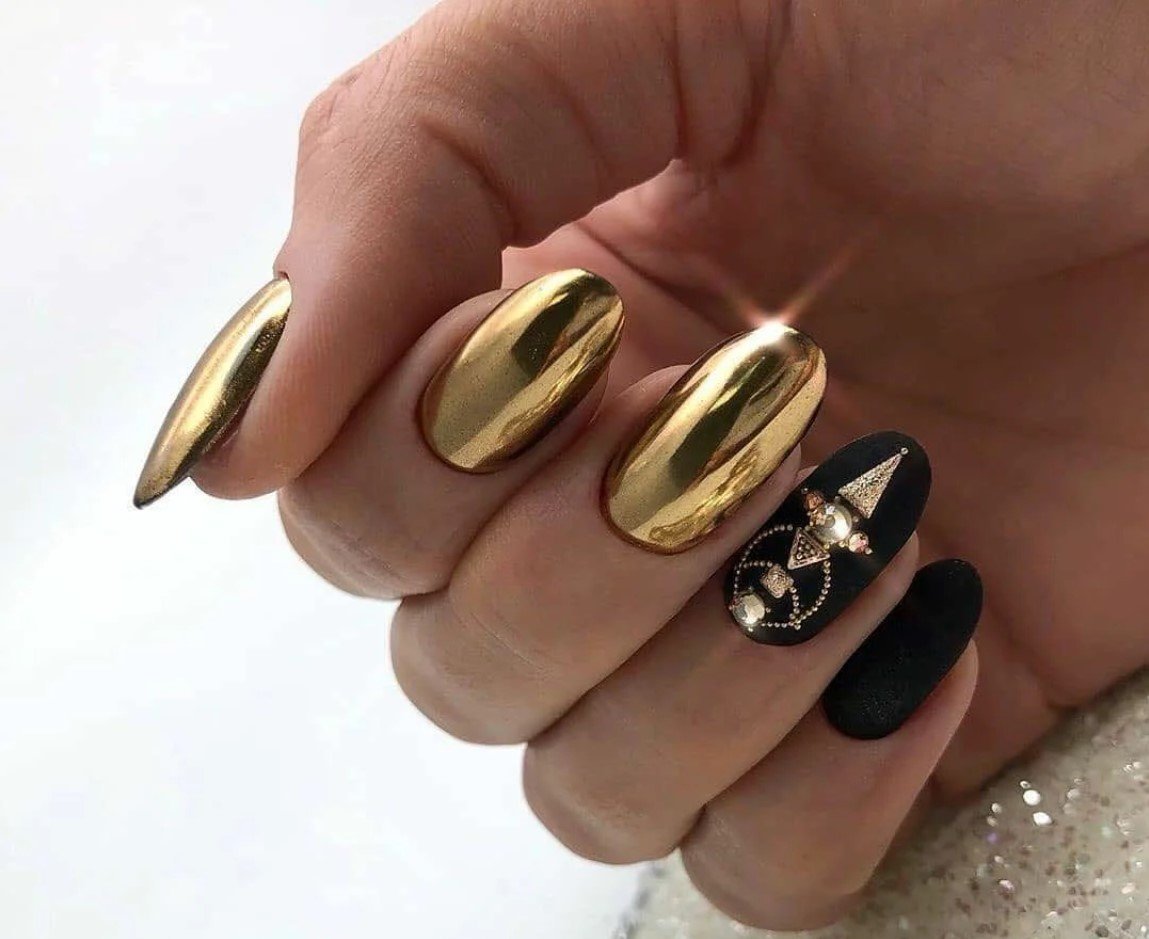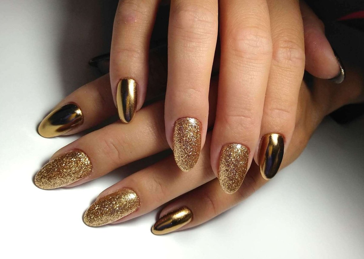 Маникюр с золотом 2022 миндаль