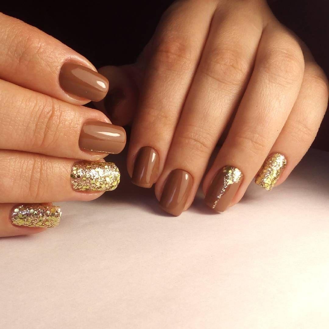Коричневый маникюр на короткие ногти