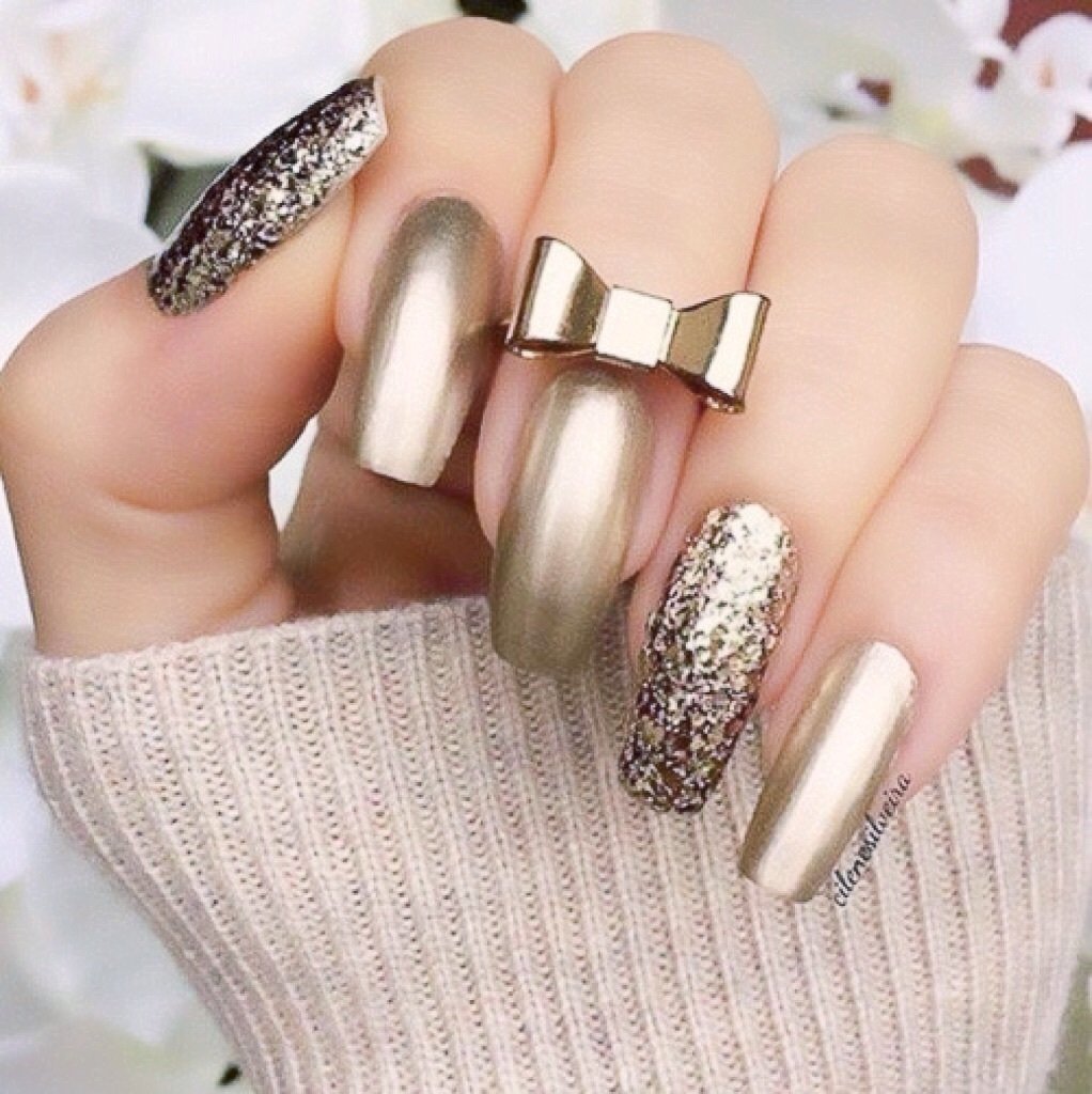Маникюр с золотистым цветом