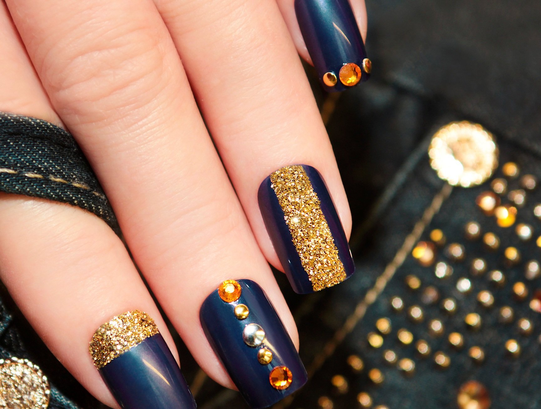 Маникюр синий с золотом