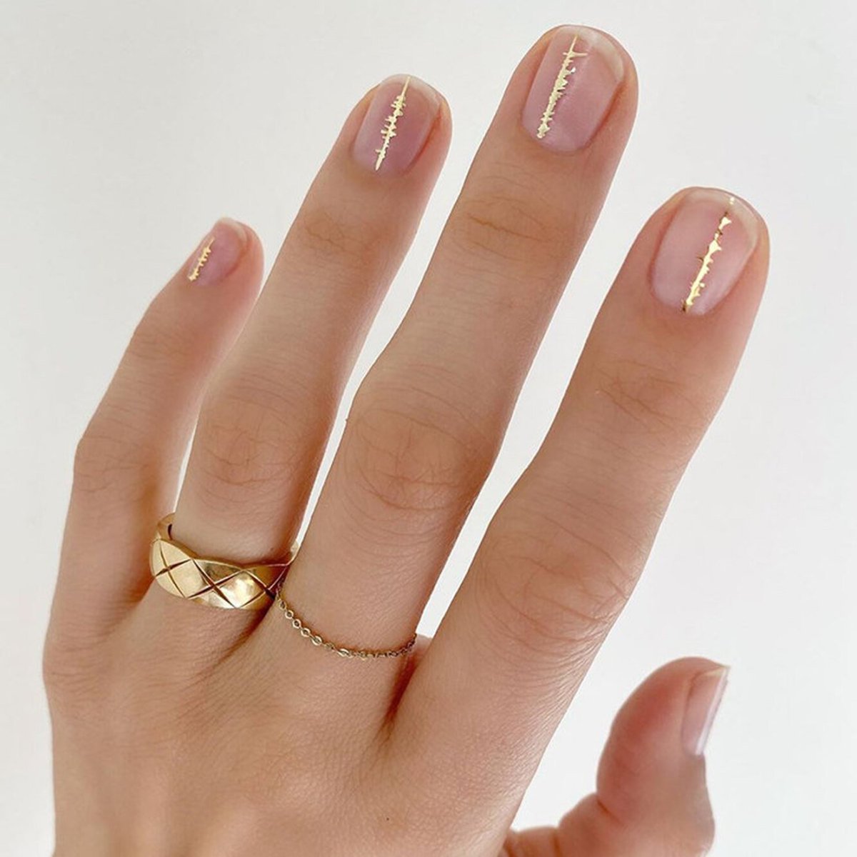 Нюдовый маникюр с золотом на коротких ногтях