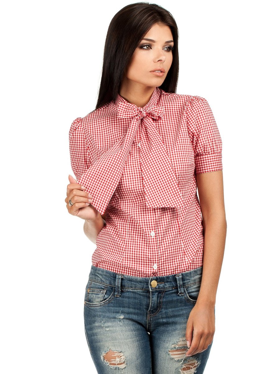 Блузы в клетку с бантом женские