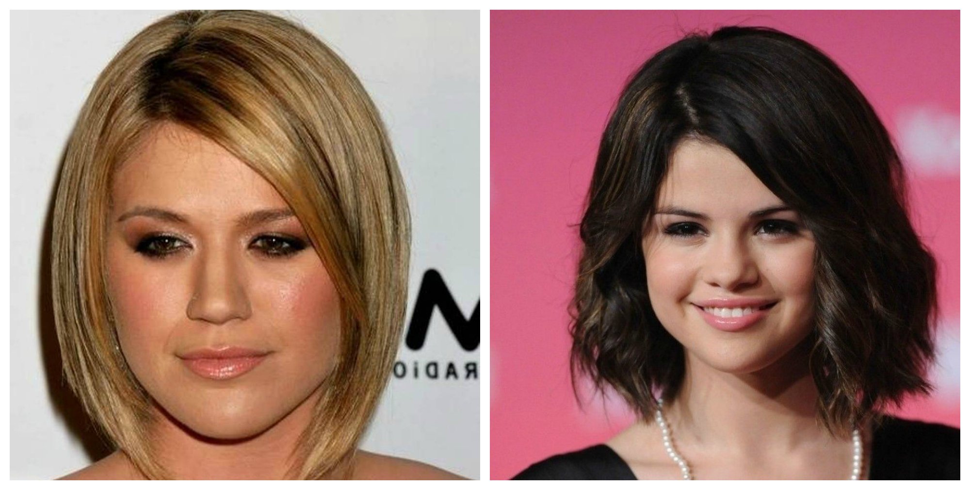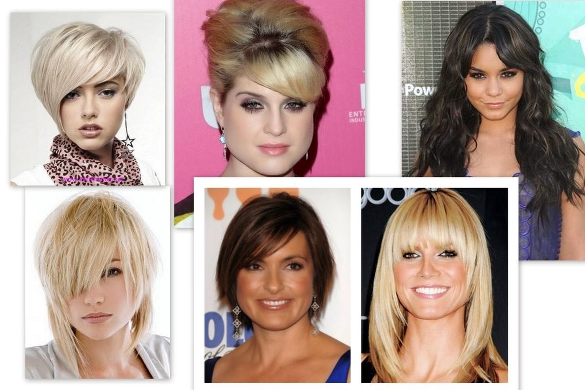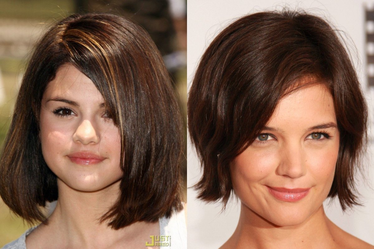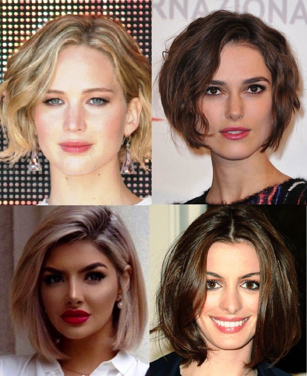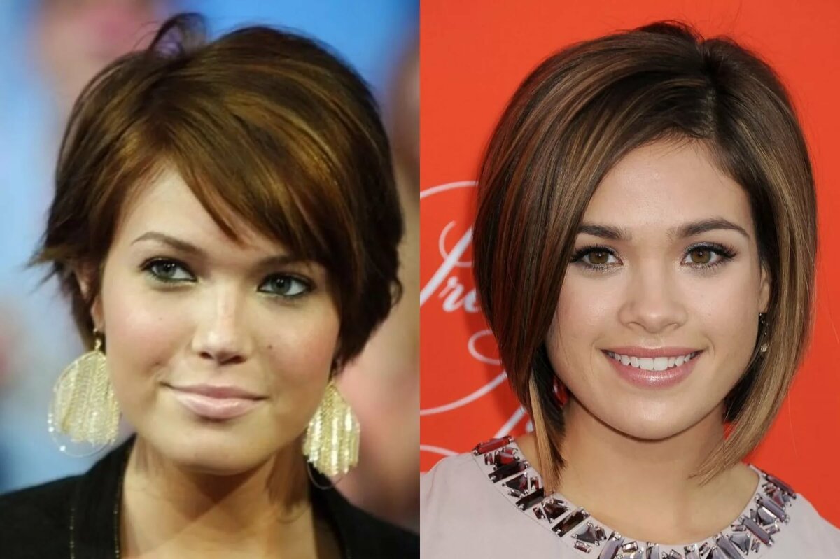 Стрижка типа каре на средние волосы с челкой для круглого лица
