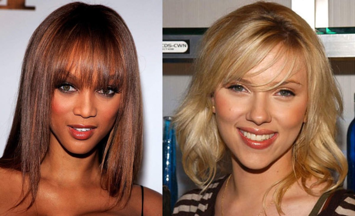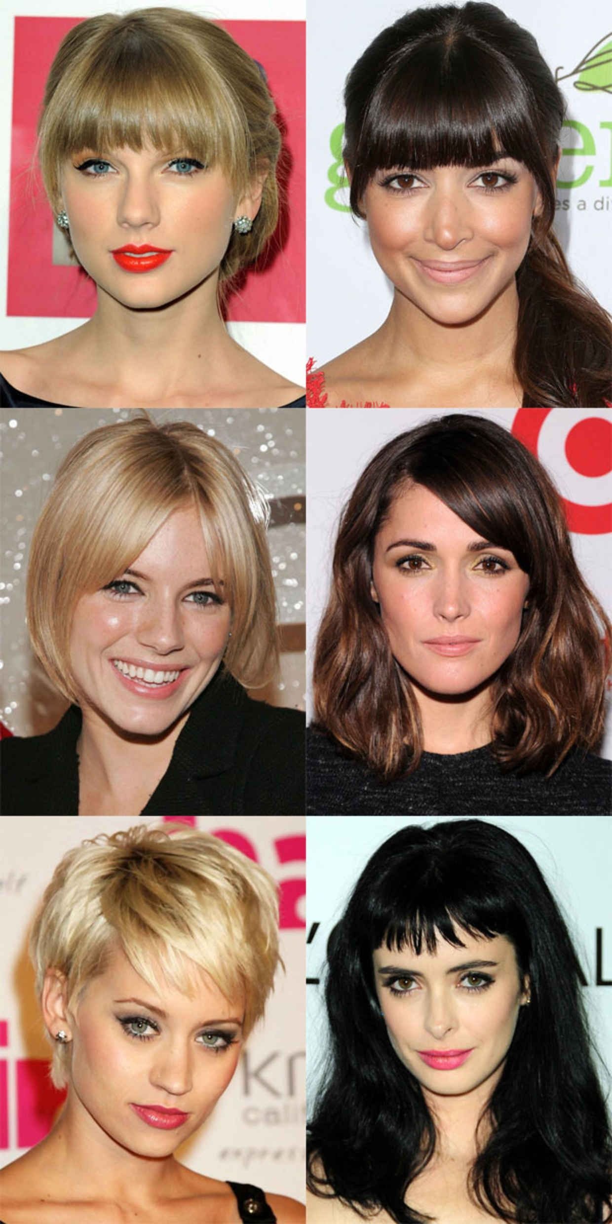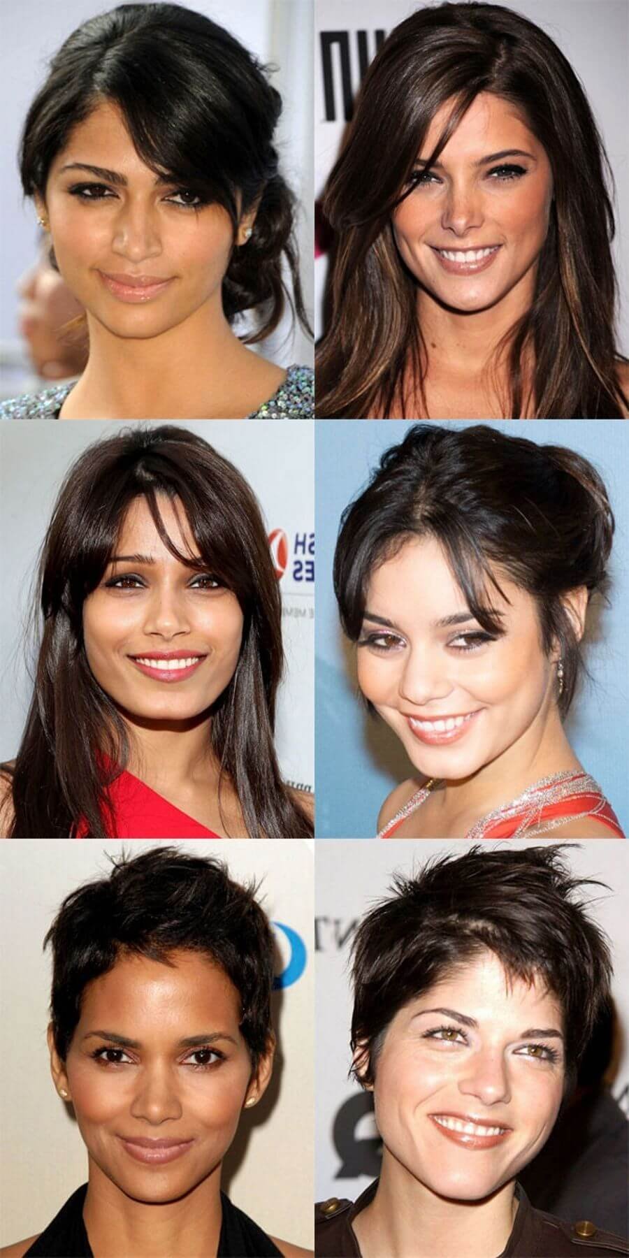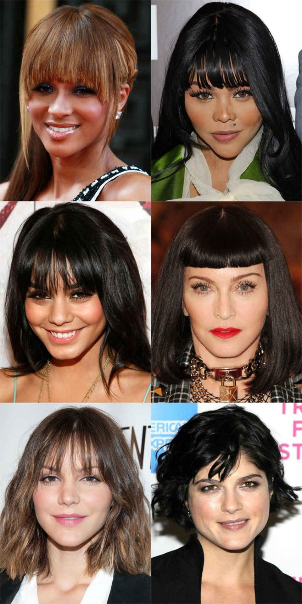 Стрижка типа каре на средние волосы с челкой для круглого лица