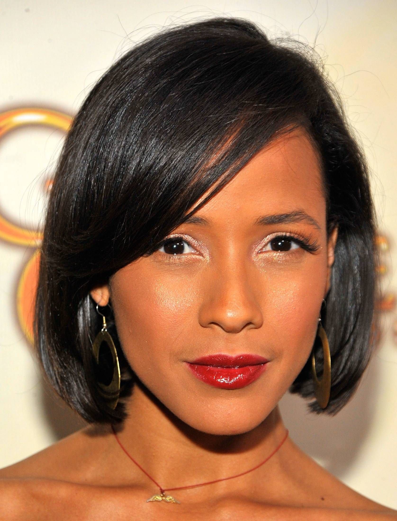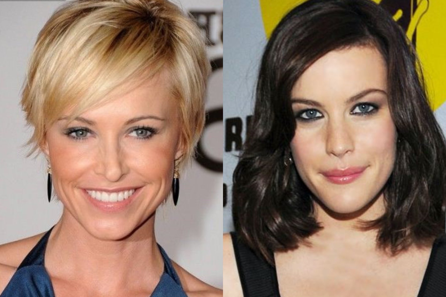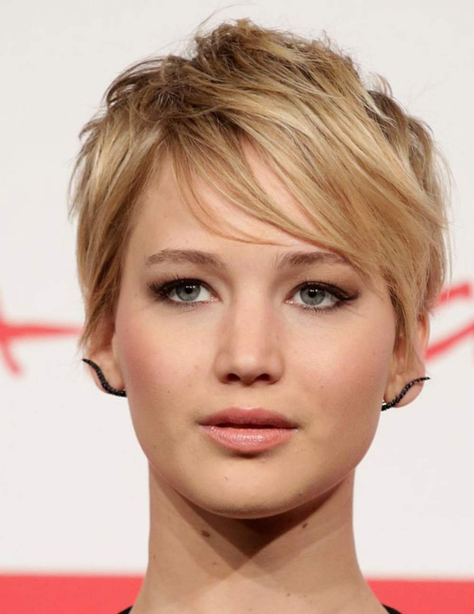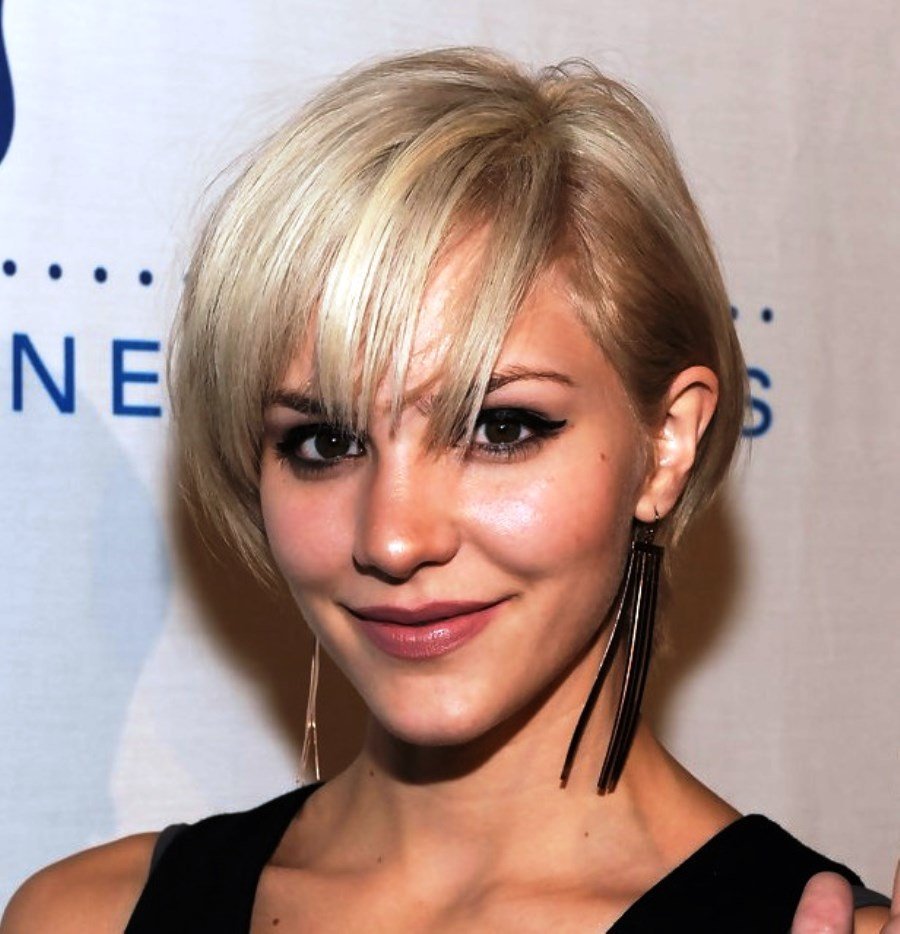 Стрижка типа каре на средние волосы с челкой для круглого лица