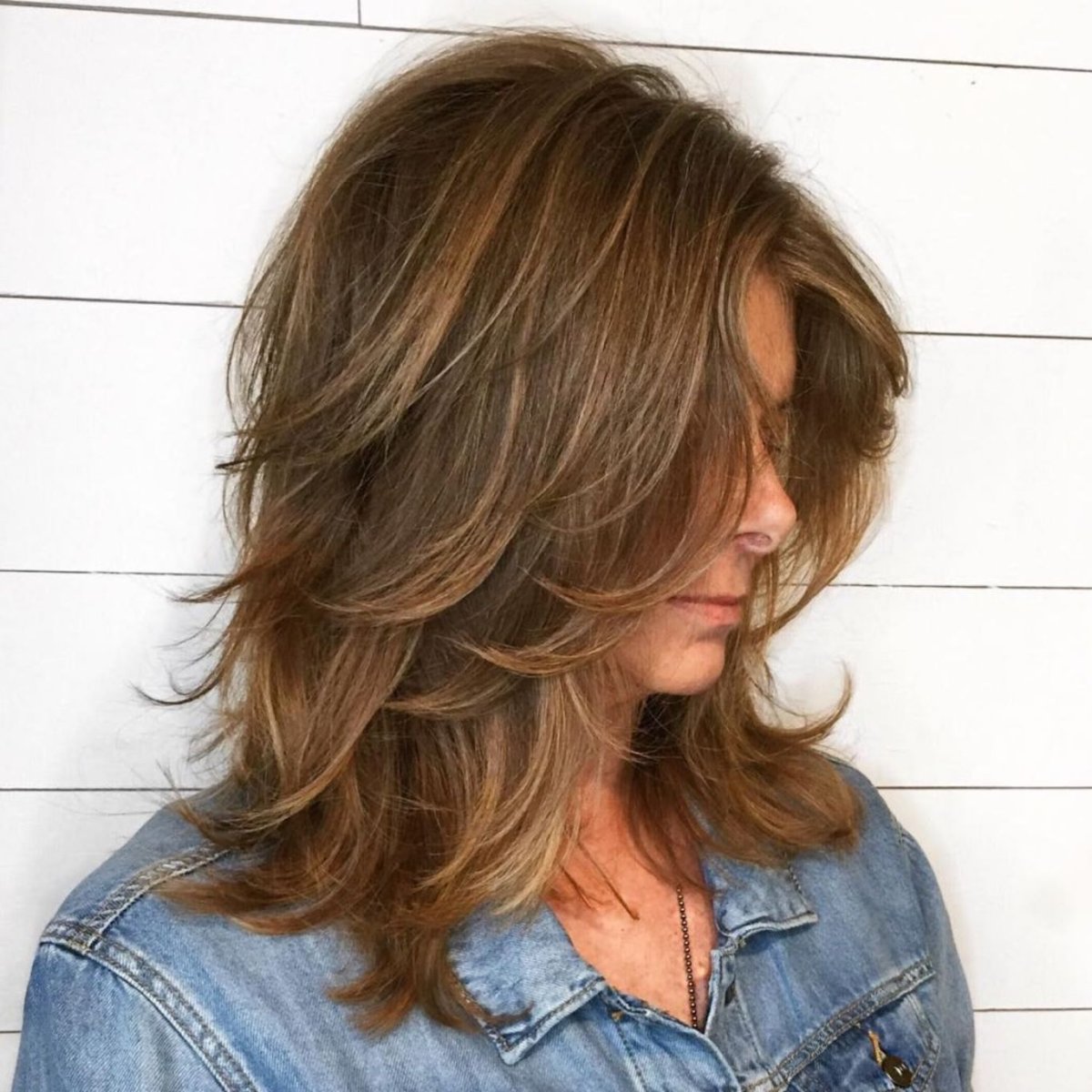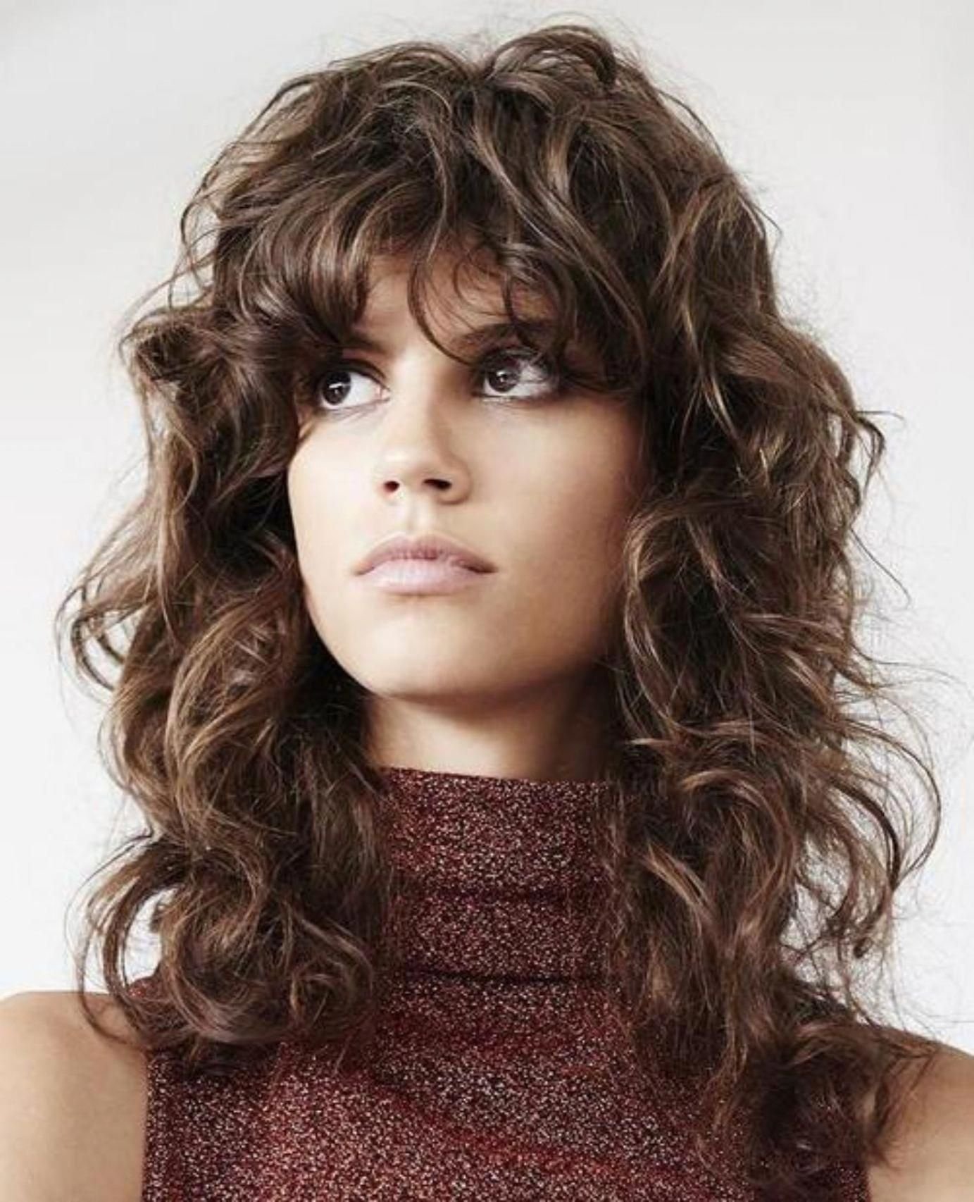 Стрижка Каскад на средние волосы с челкой 2022 на волнистые волосы