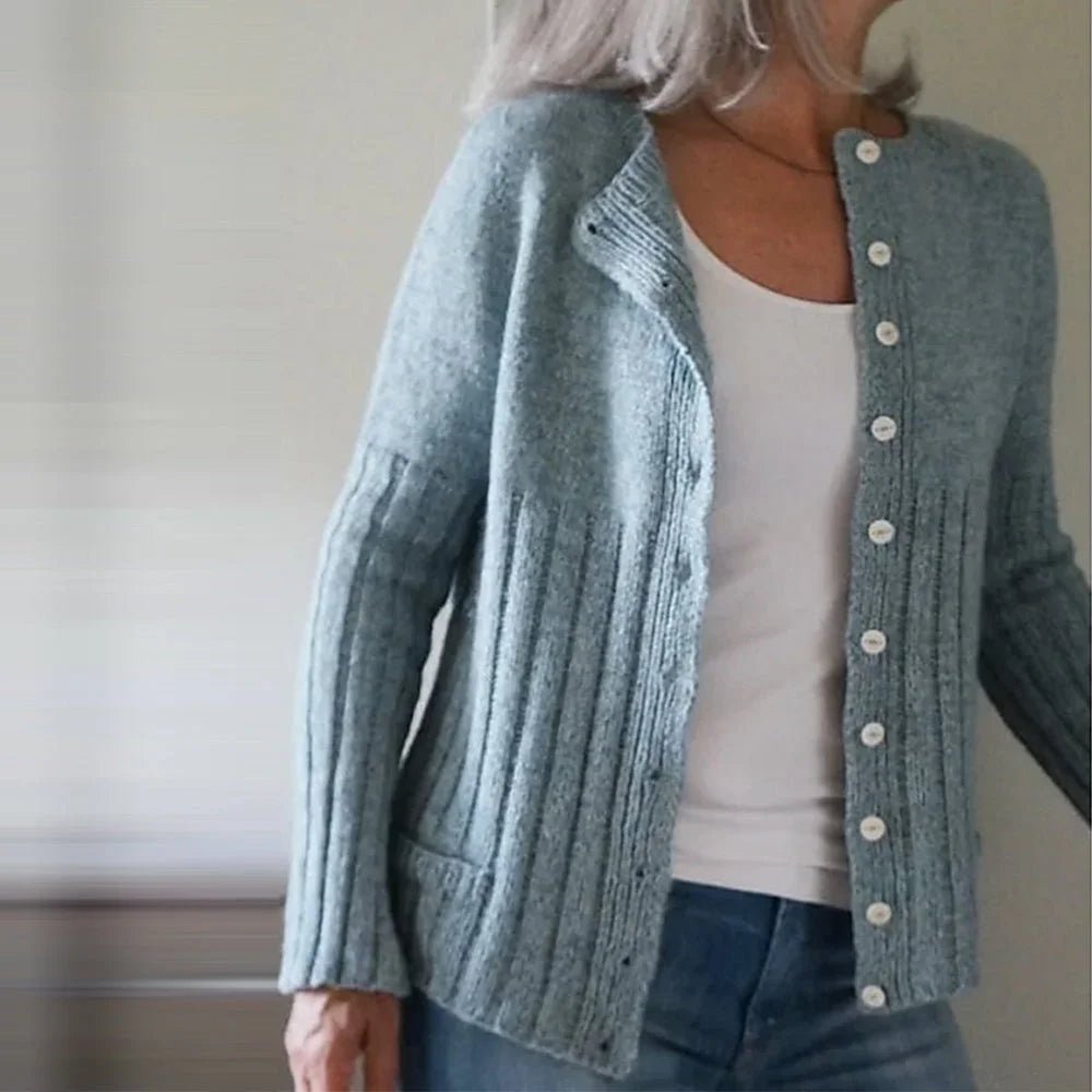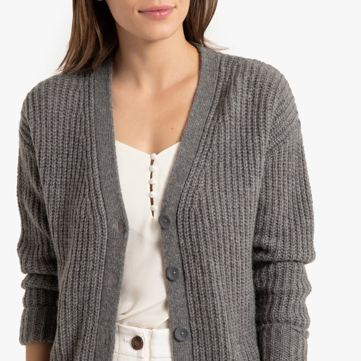 Кардиган с цельновязанной планкой реглан сверху с карманами