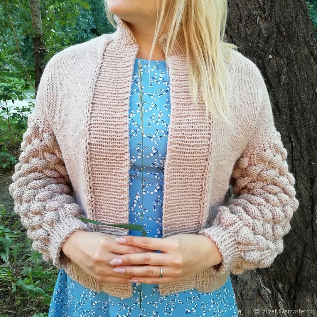 Кардиган короткий женский вязаный спицами с описанием и схемой