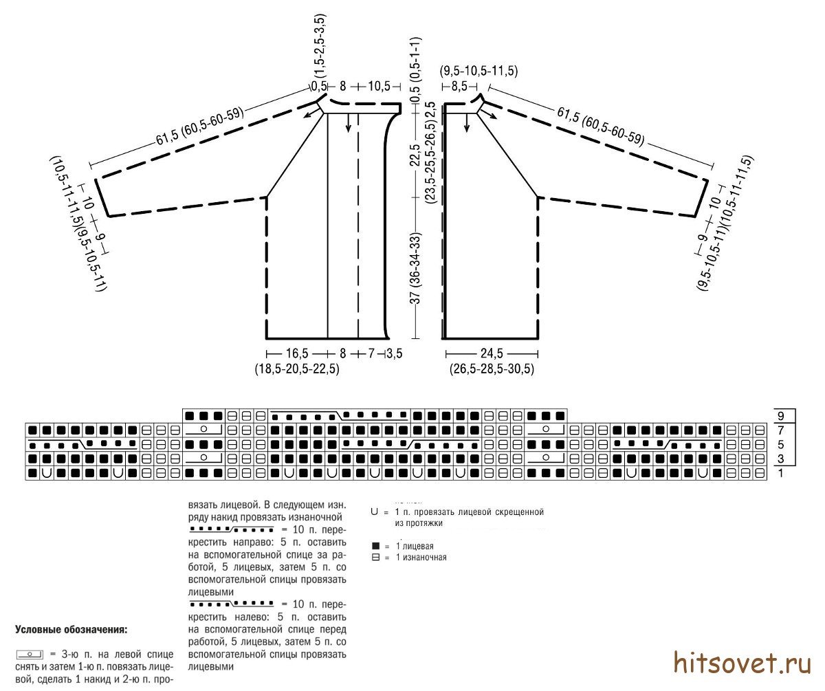 Кардиган с рукавом реглан спицами вязание сверху схема
