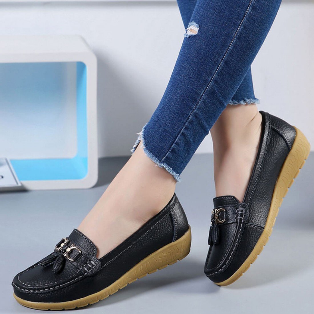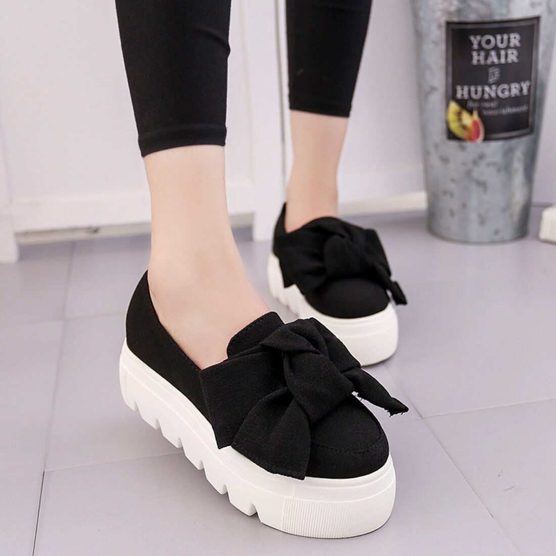 Women Tassel Bowtie Loafers woman Slip on Sneakers Ladies Soft PU Leather Sewing Flat platform female Shoes woman all Seasons
