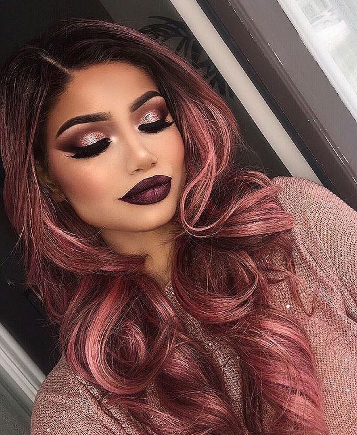 Роуз Голд на темные волосы