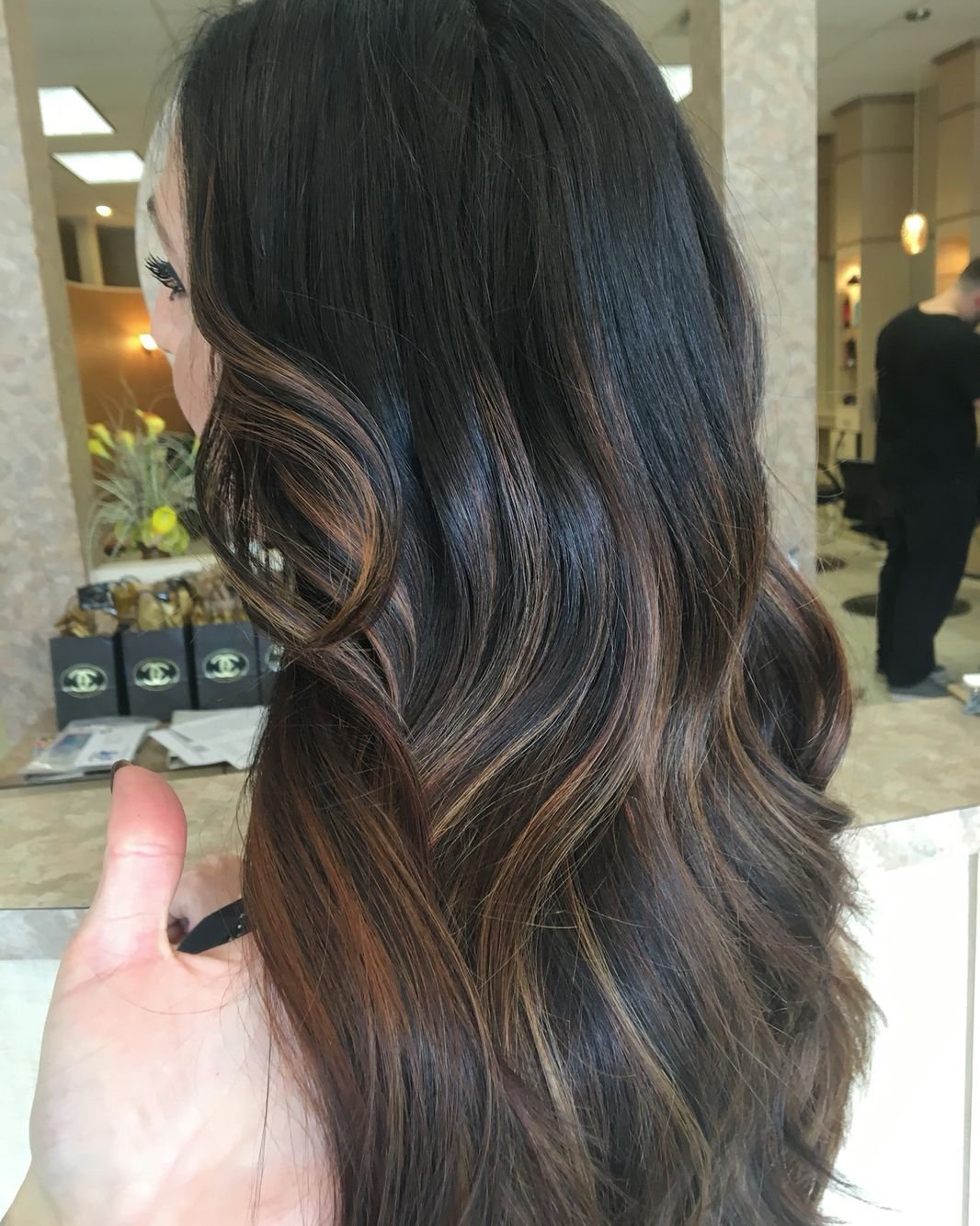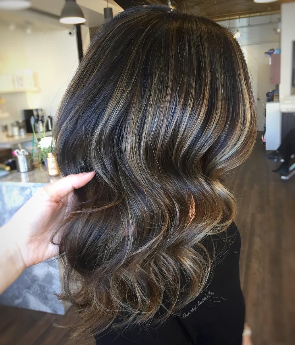 Тёмное мелирование на темные волосы