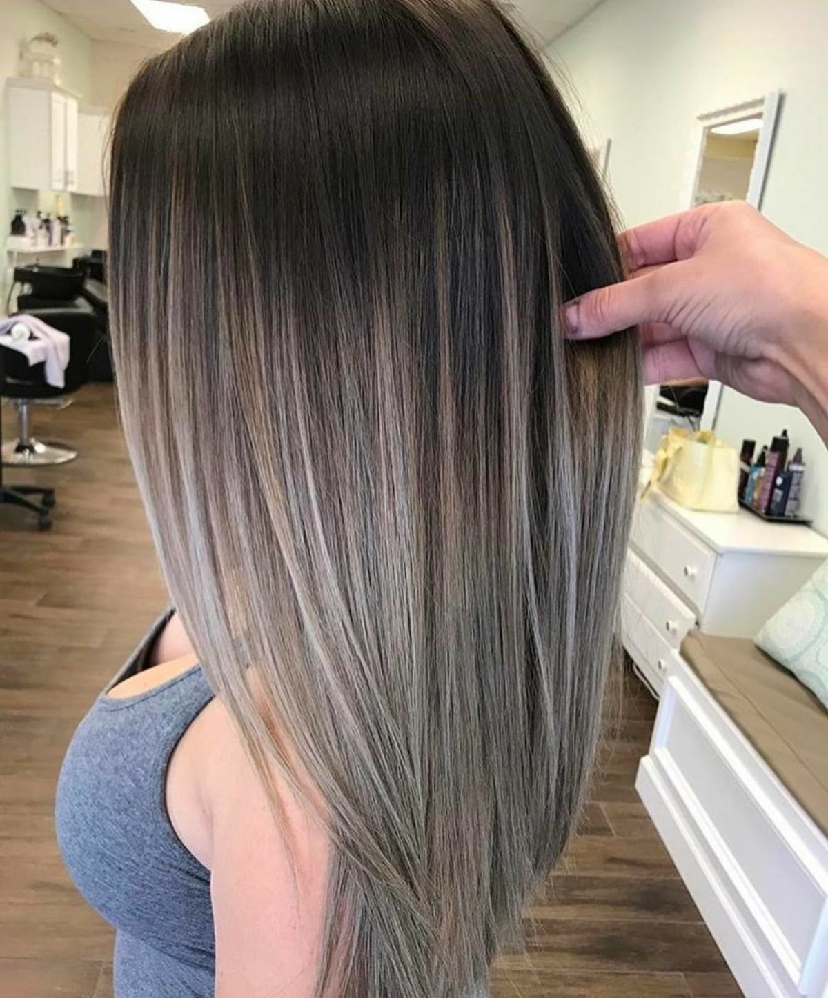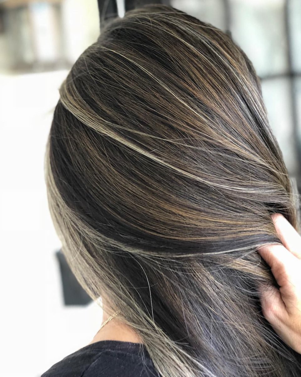 Балаяж на темные волосы 2021 пепельный