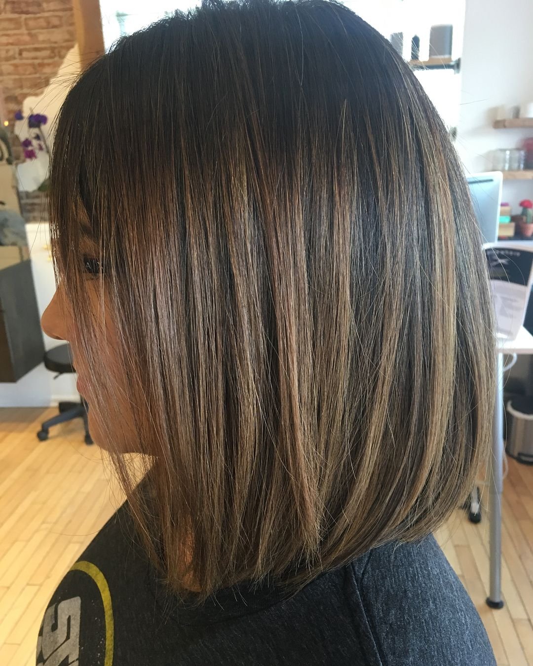 Балаяж на темные каре прямые