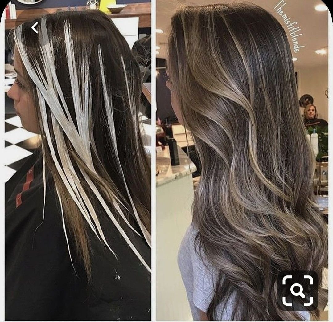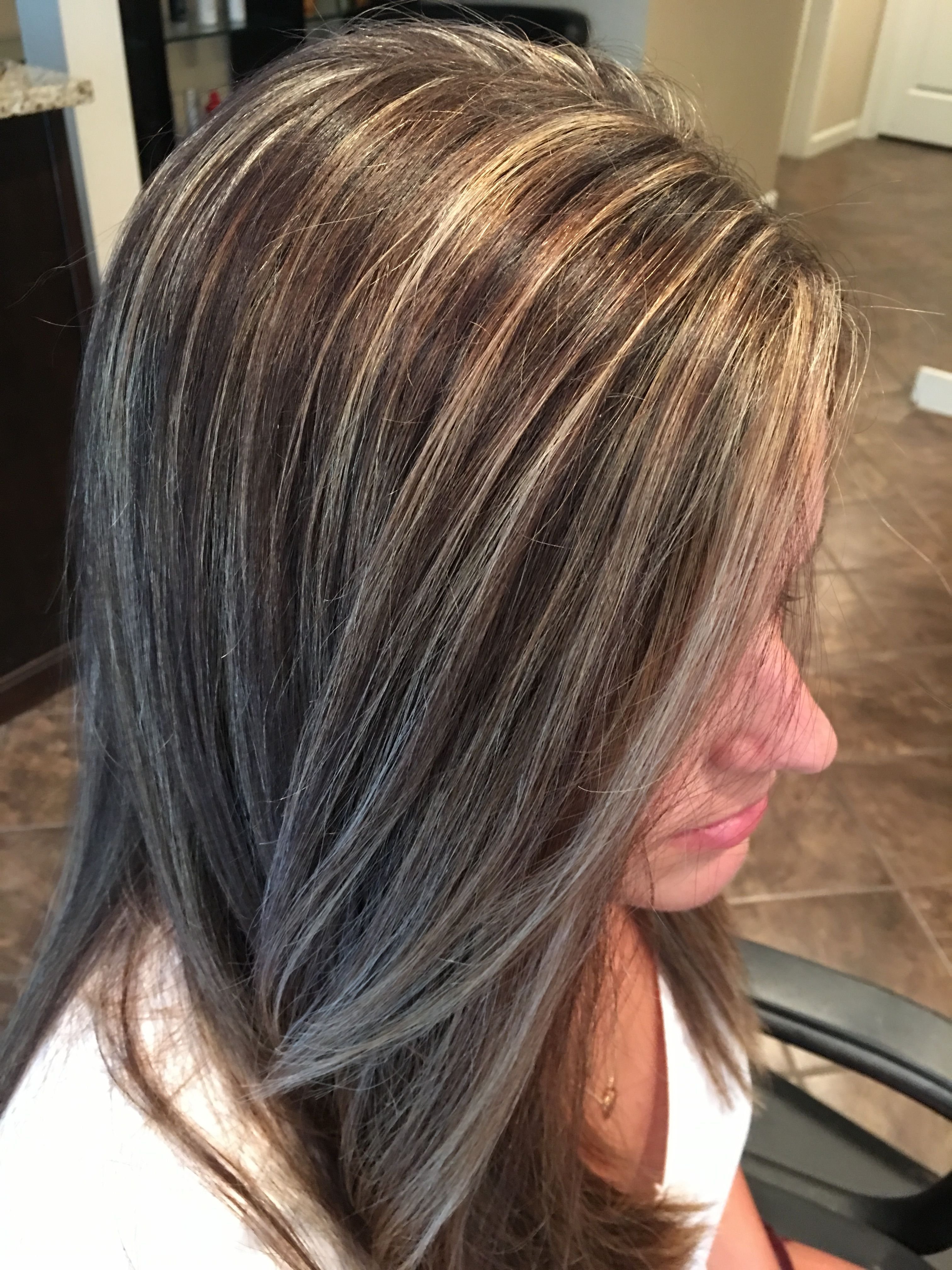 Сложное окрашивание на темные волосы с сединой