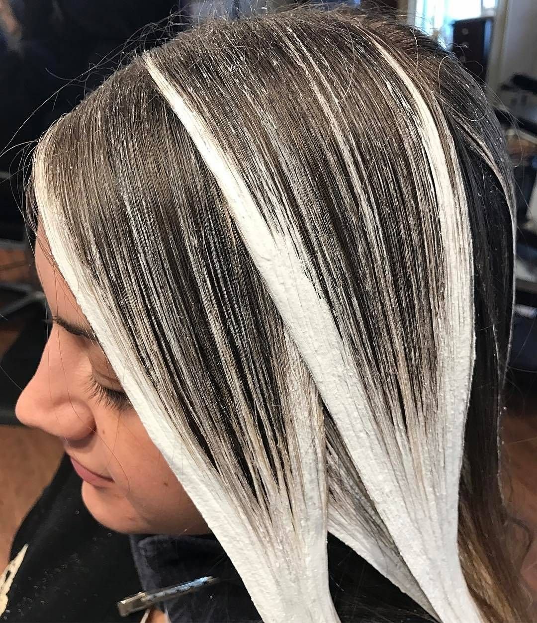 Белое мелирование на темные волосы