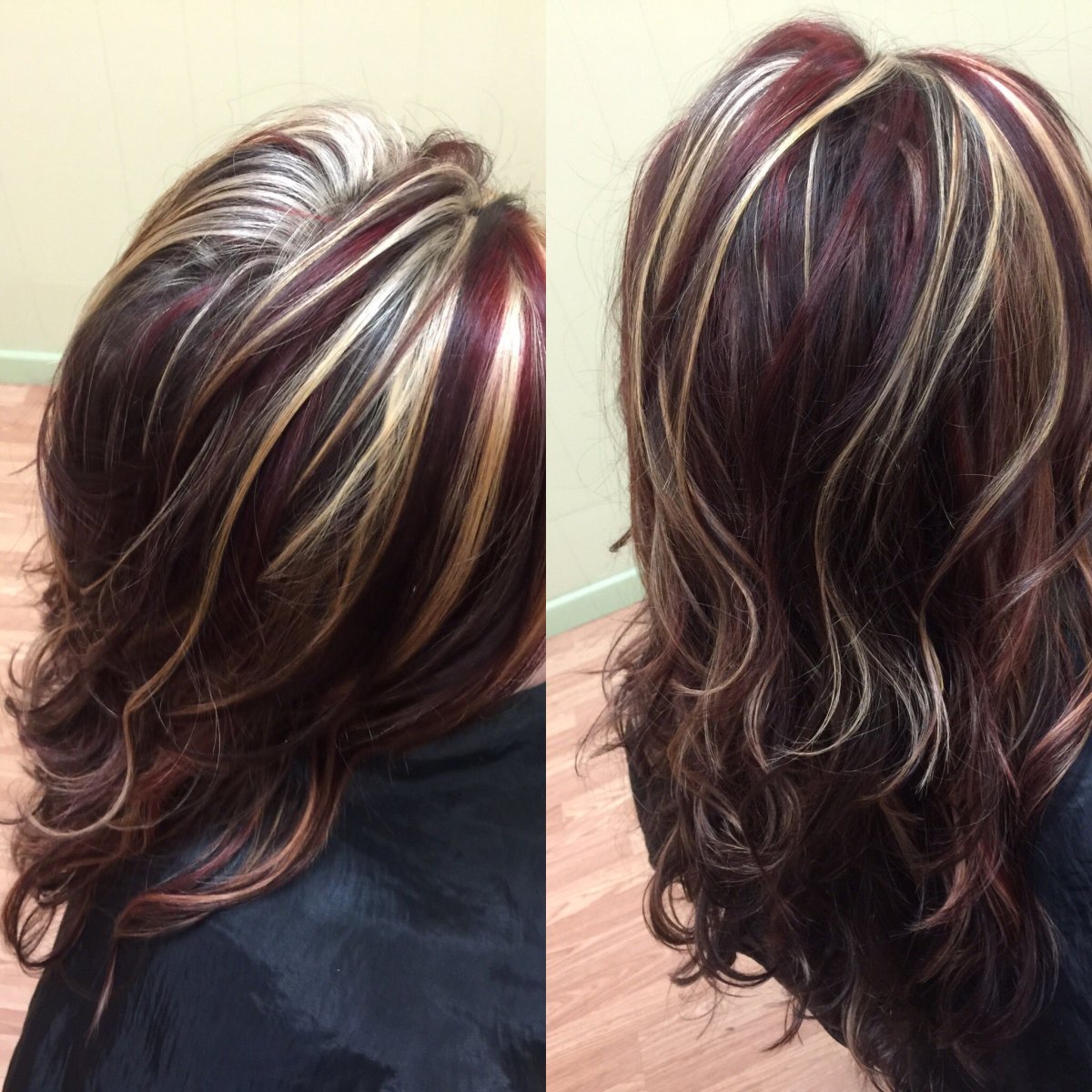 Мелирование на темно вишнёвый цвет