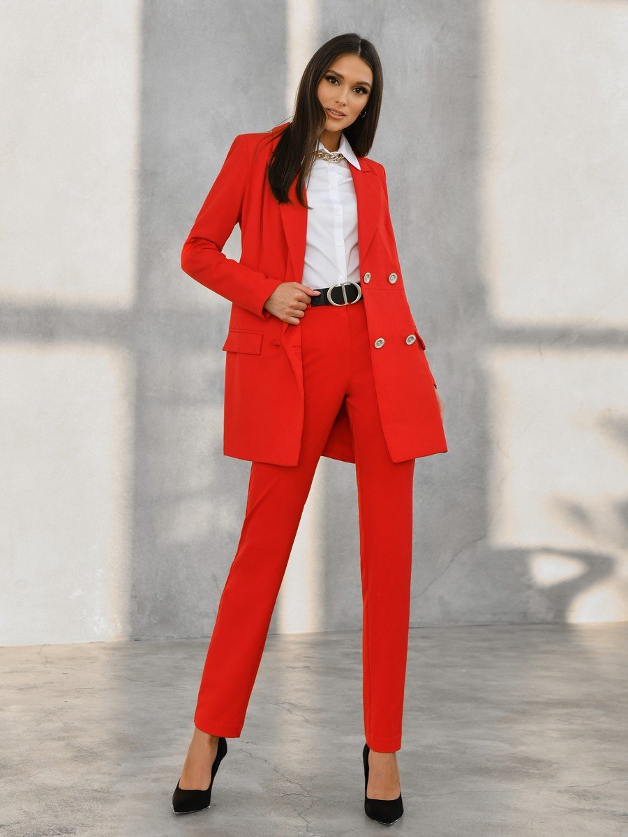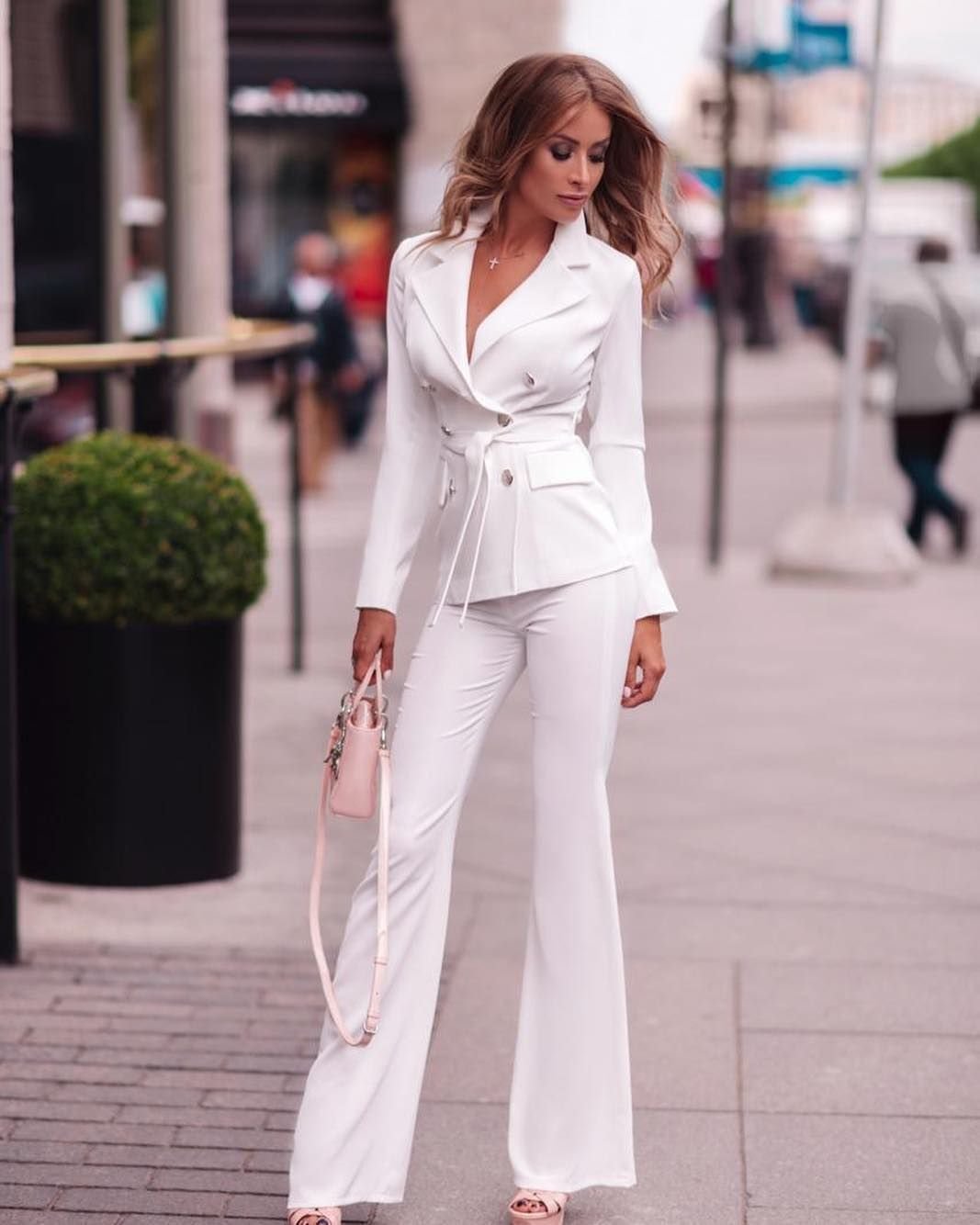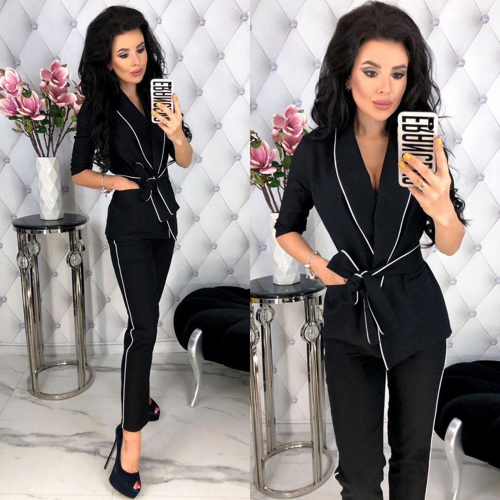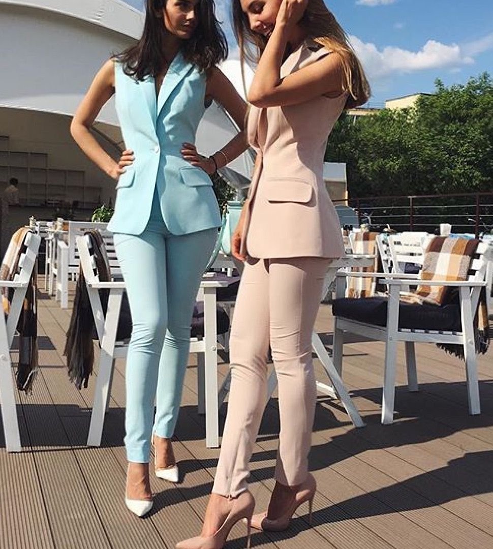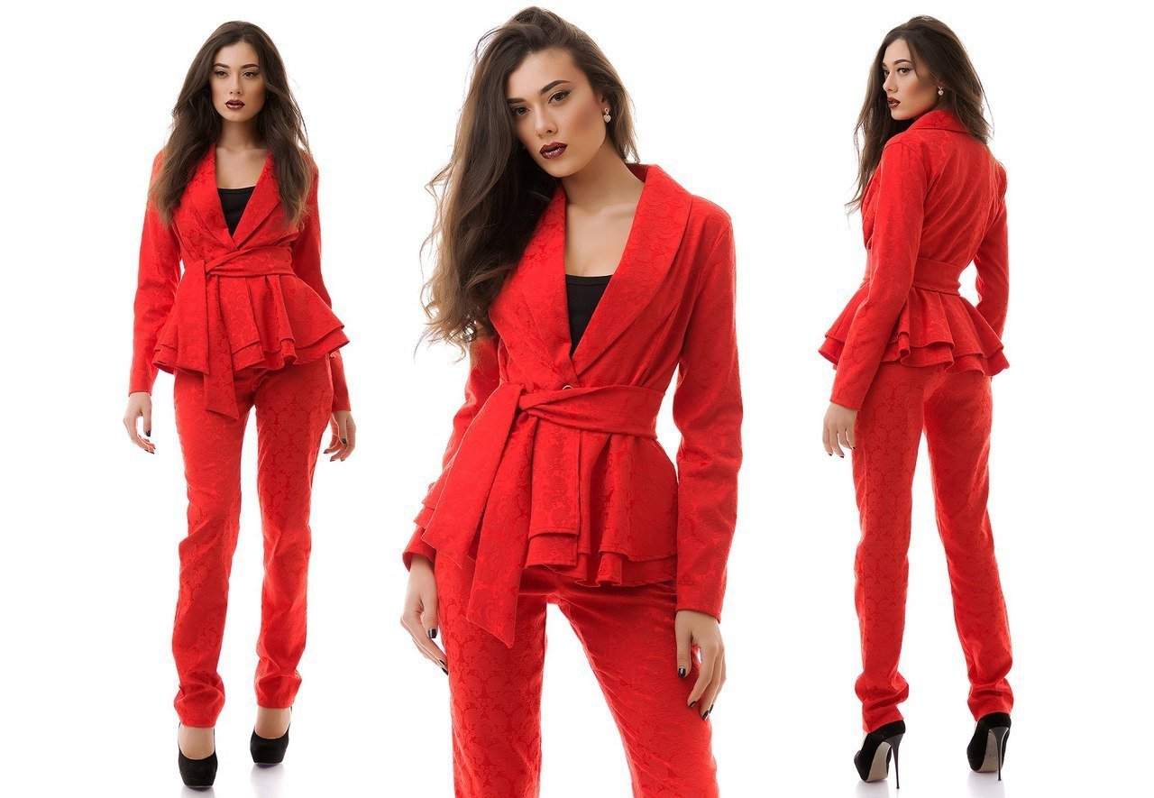 Показ мод женский брючный костюм с ассиметричным пиджаком