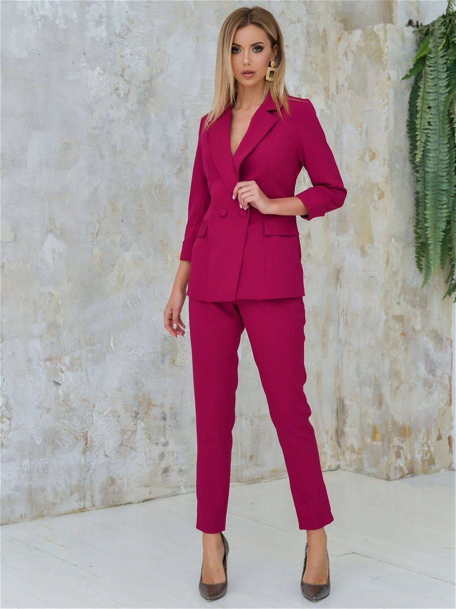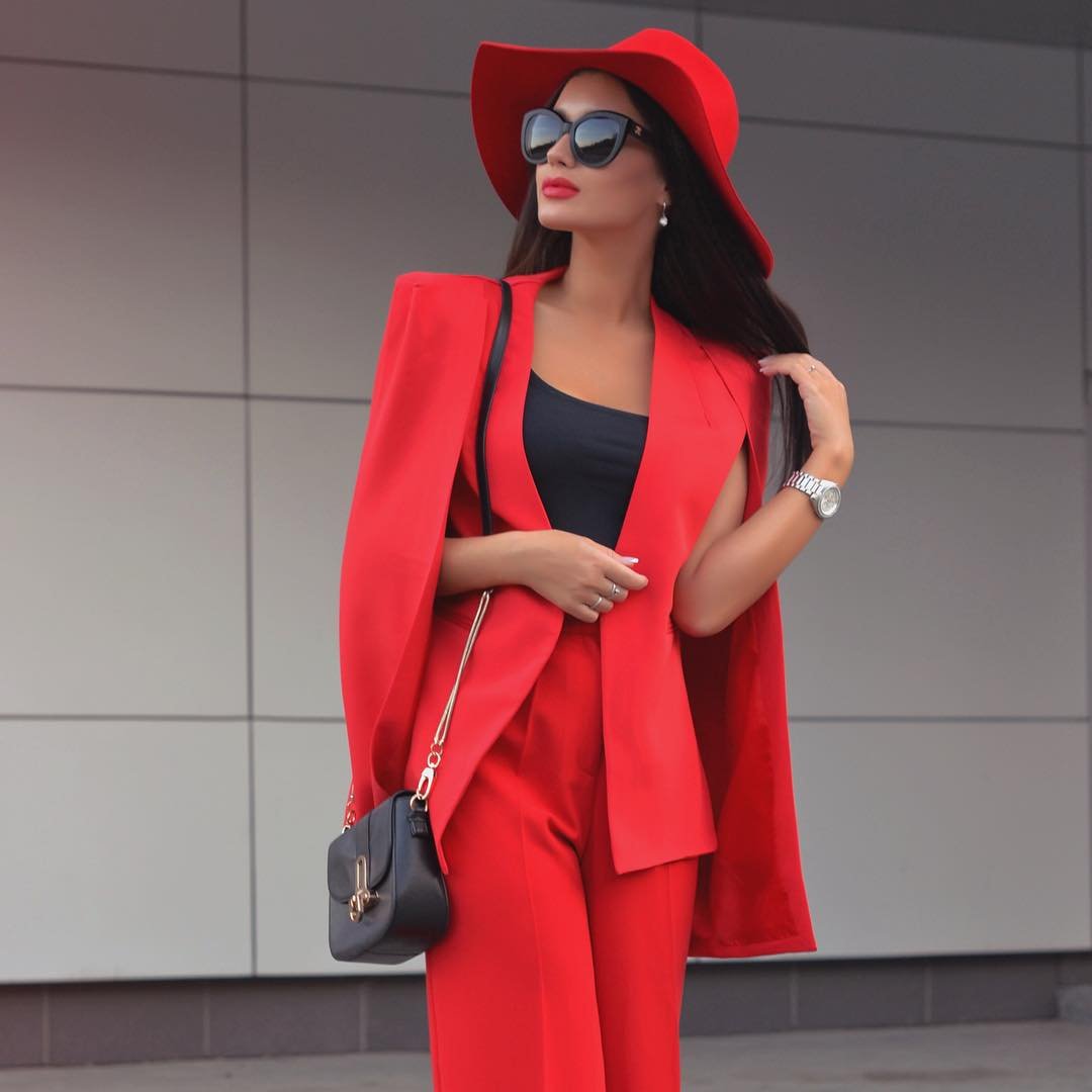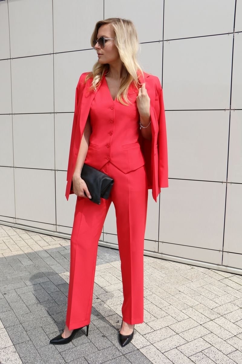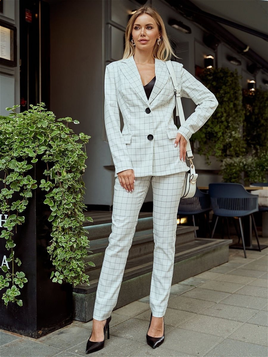 Показ мод женский брючный костюм с ассиметричным пиджаком