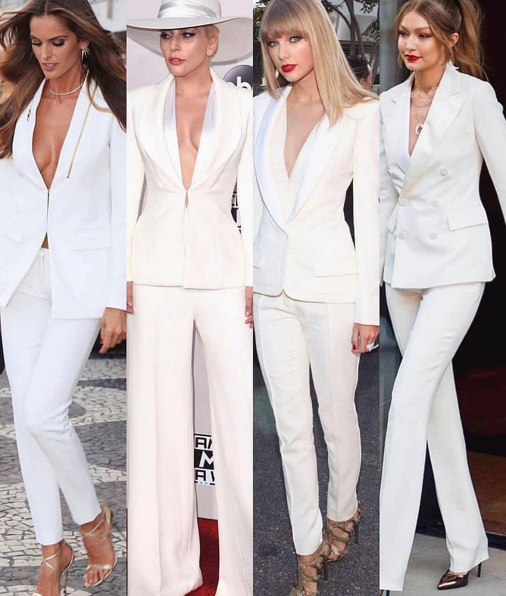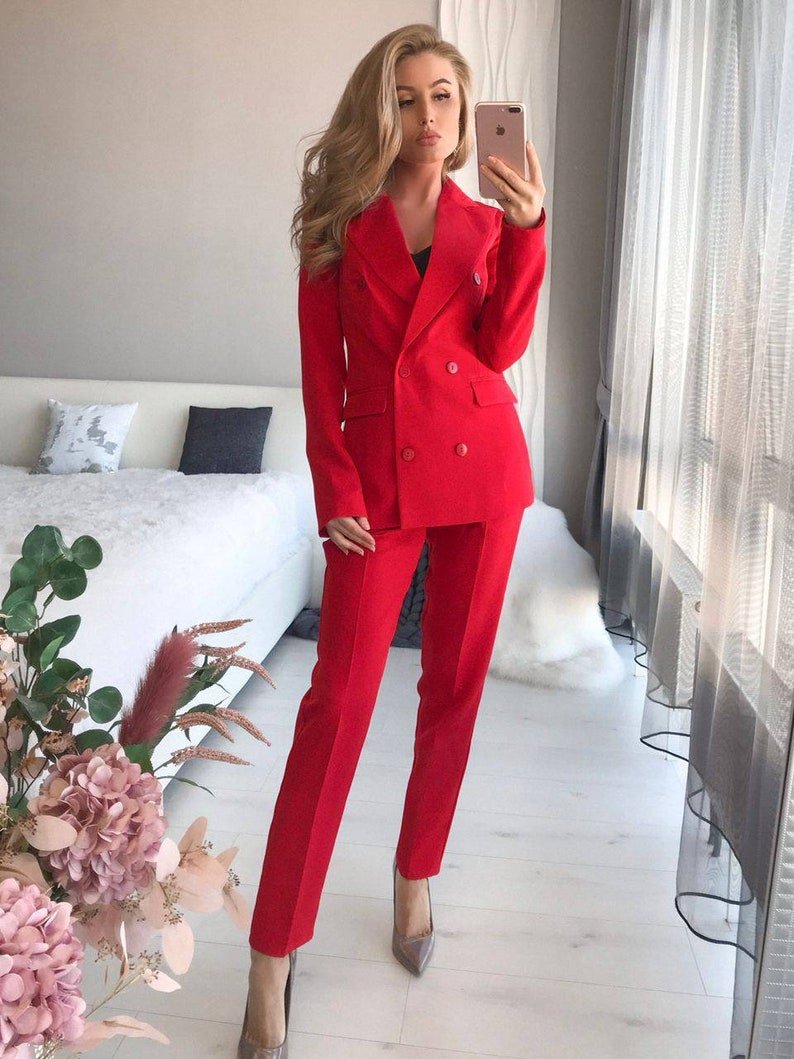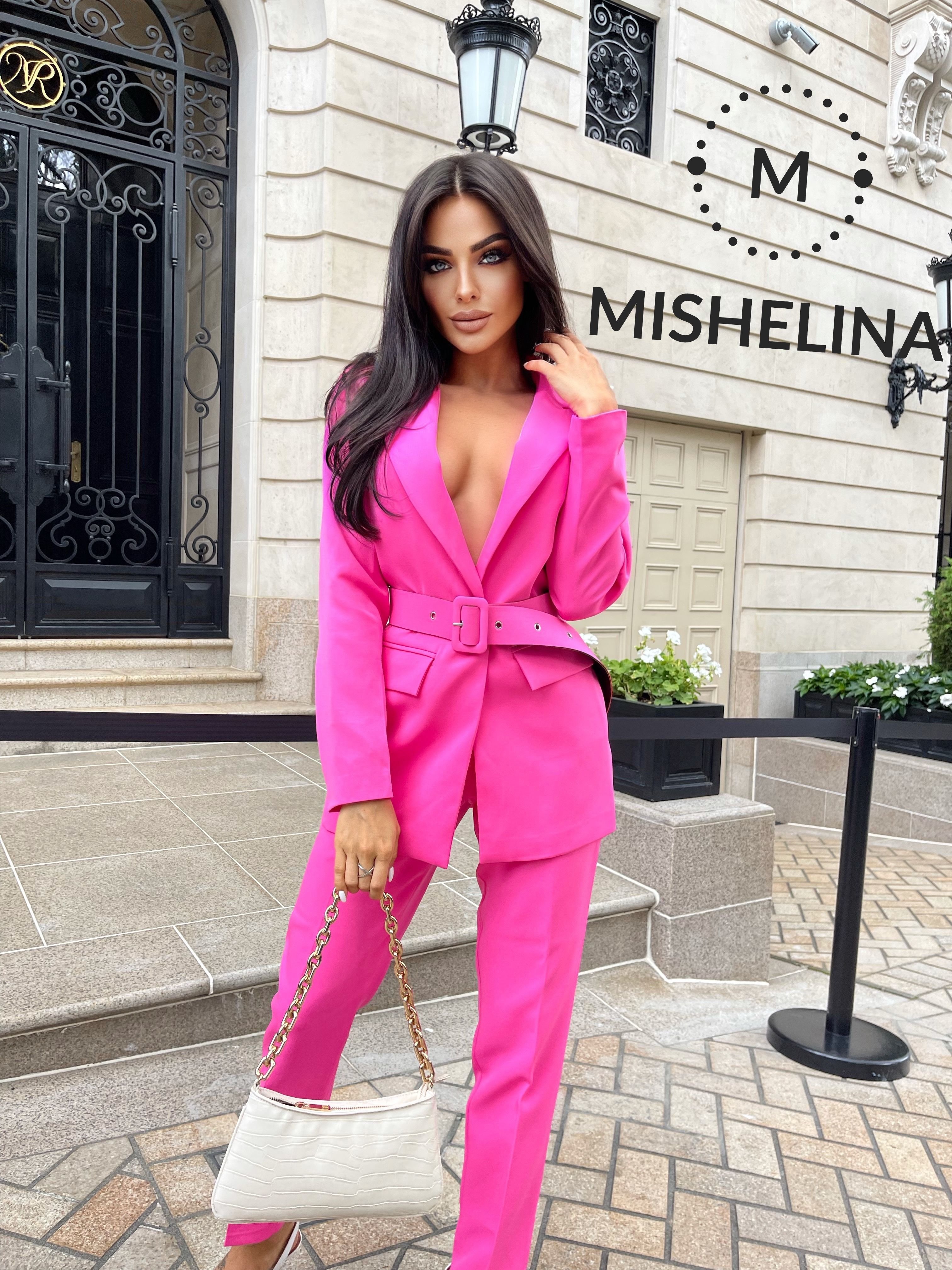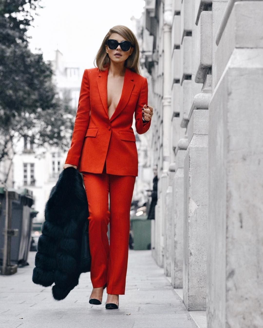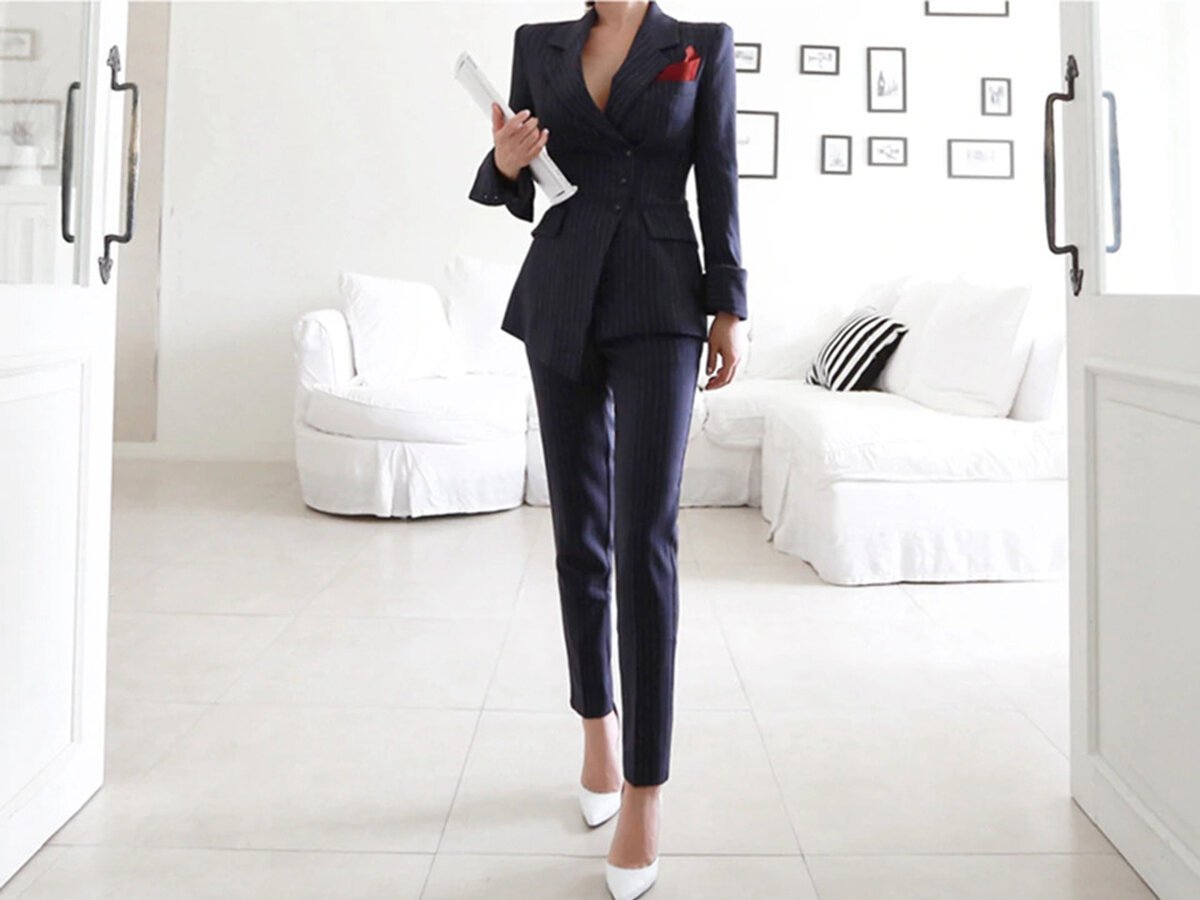 Показ мод женский брючный костюм с ассиметричным пиджаком
